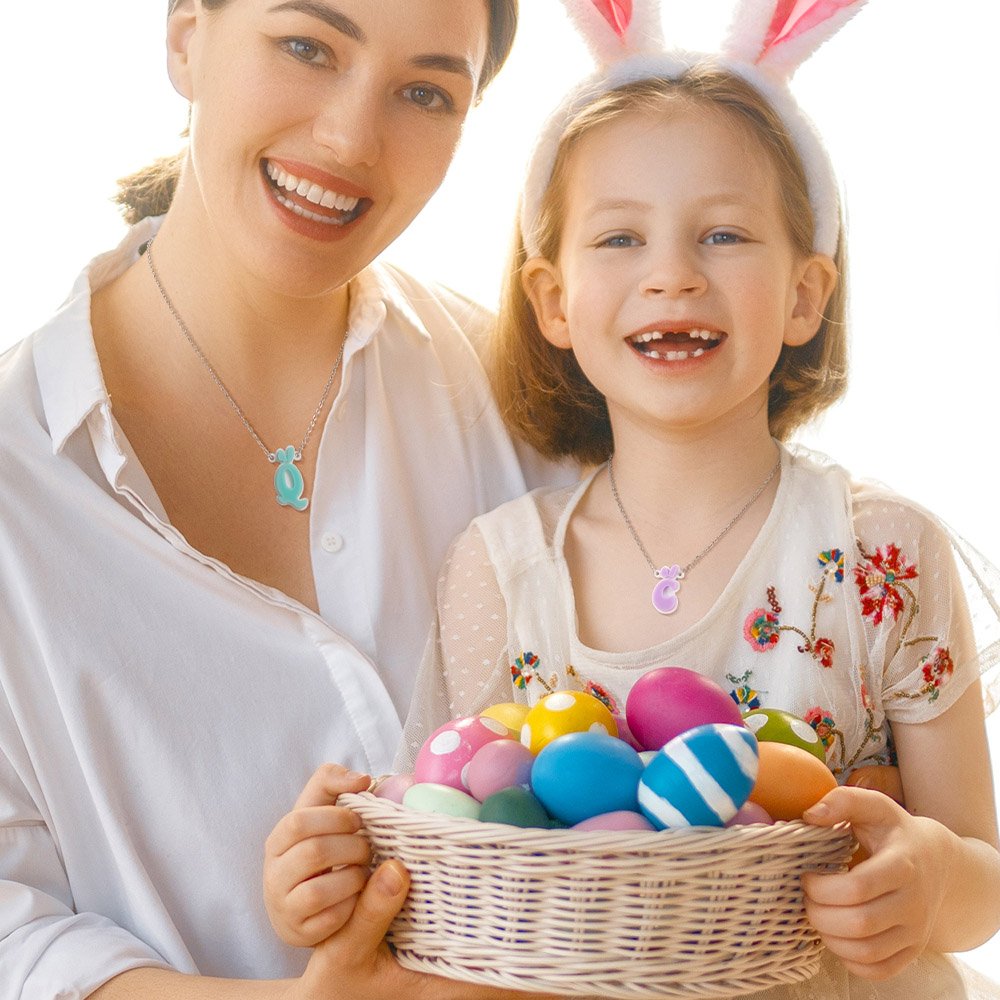 Este collar utiliza un juguetón diseño de orejas de conejo, como uno de los símbolos de la Pascua, el conejo representa el renacimiento de la primavera y el nacimiento de una nueva vida. El diseño de orejas de conejo complementa las iniciales personalizadas y está disponible en varios colores, lo que lo convierte en un adorno conmemorativo único y valioso para celebraciones de cumpleaños o Pascua.