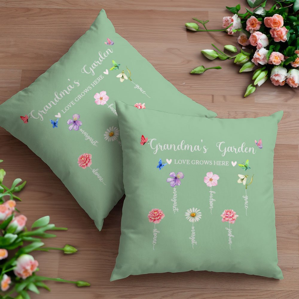 Cada funda de almohada presenta encantadoras mariposas, flores de nacimiento que representan a los niños y el texto "El amor crece aquí" y "Te elegiríamos a ti". Las mariposas simbolizan la belleza y la alegría del crecimiento, el jardín y las flores reflejan el amor entre el niño y la madre o la abuela, lo que hace que este regalo no sólo sea visualmente atractivo, sino también significativo y edificante.