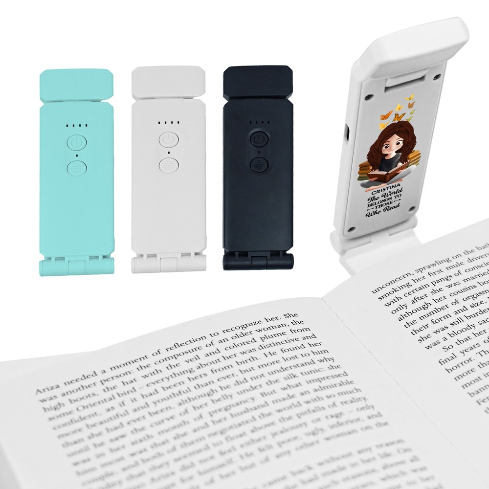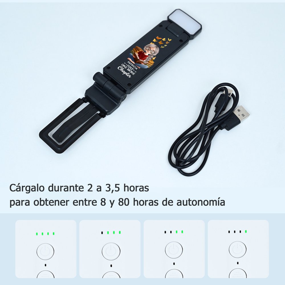 Un personaje de dibujos animados y un nombre personalizables decoran la superficie de la lámpara, con tres opciones de color disponibles blanco negro y azul lago, convirtiendo cada lámpara en un objeto único que transmite sentimientos personales. El cabezal flexible de la lámpara gira 360 grados horizontalmente y se ajusta 90 grados verticalmente, mientras que el clip inferior se abre 180 grados, adaptándose fácilmente a diferentes posturas y ángulos de lectura. La función y la estética se combinan a la perfección en este diseño compacto.