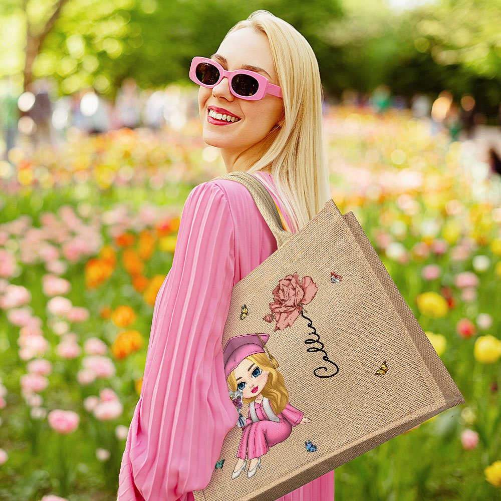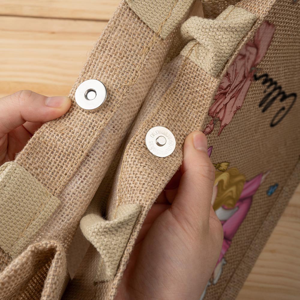 Este bolso está tematizado con simpáticos personajes de dibujos animados, y los personajes se pueden personalizar con diseños únicos y llenos de infantilismo. También viene con flores y nombres de cumpleaños, y hay cuatro estilos para elegir, incluyendo bolsos normales grandes y pequeños, así como bolsos tote grandes con hebilla magnética y cremallera. Es un accesorio único y significativo que muestra tu personalidad.