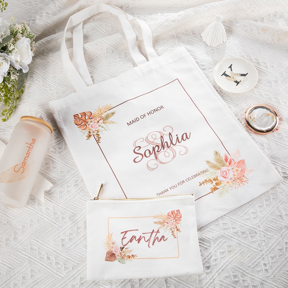 ¿Qué mejor manera de mostrar tu aprecio y cariño por tus damas de honor o asistentes a la despedida de soltero que regalándoles una bolsa de mano personalizada? La Tote Bag te permite personalizar cada bolsa con nombres individuales, convirtiéndola en un regalo verdaderamente único y personal.
