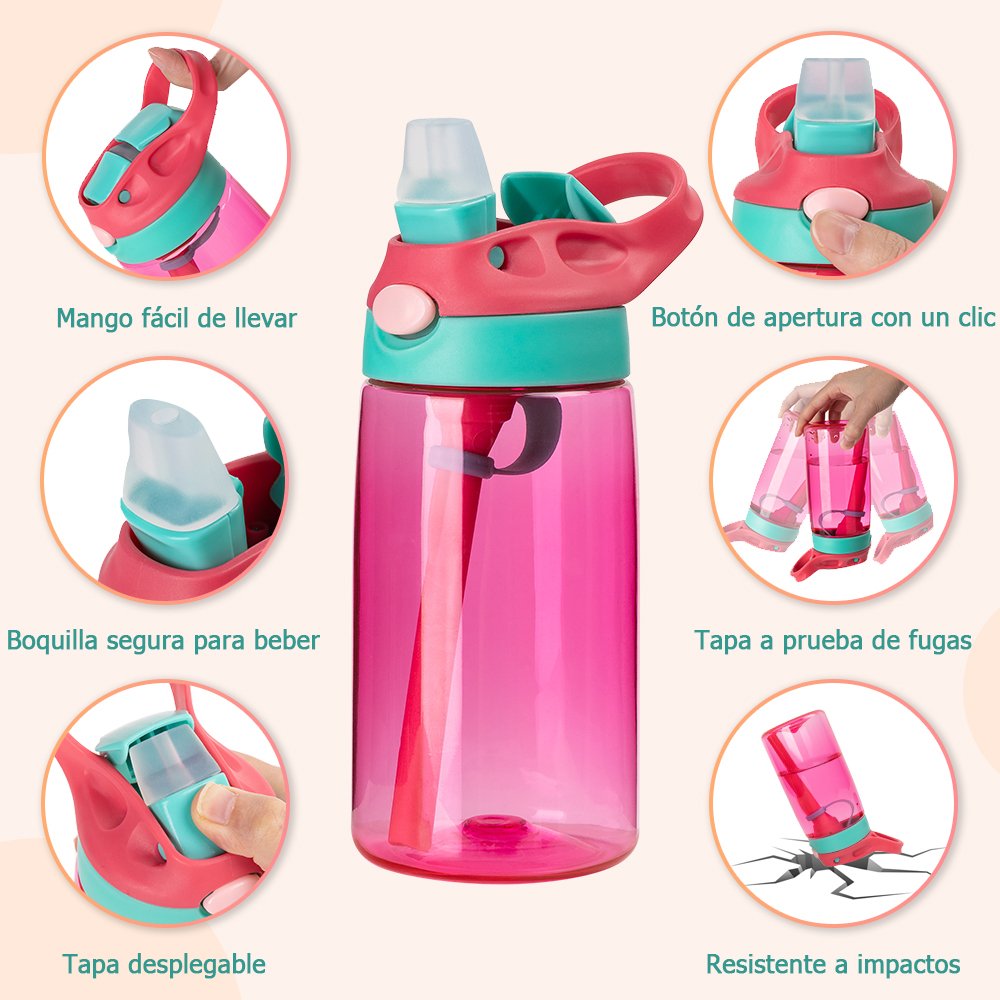 La botella de agua está diseñada para niños. Gracias a su tamaño y diseño, los niños pueden manejarla y beber de ella cómodamente. Con su diseño liviano y portátil, pueden llevarla fácilmente a cualquier lugar, ya sea al colegio, al parque o en vacaciones familiares. Es el regalo ideal para los niños en cumpleaños, Día del Niño, el primer día de escuela y otras ocasiones.