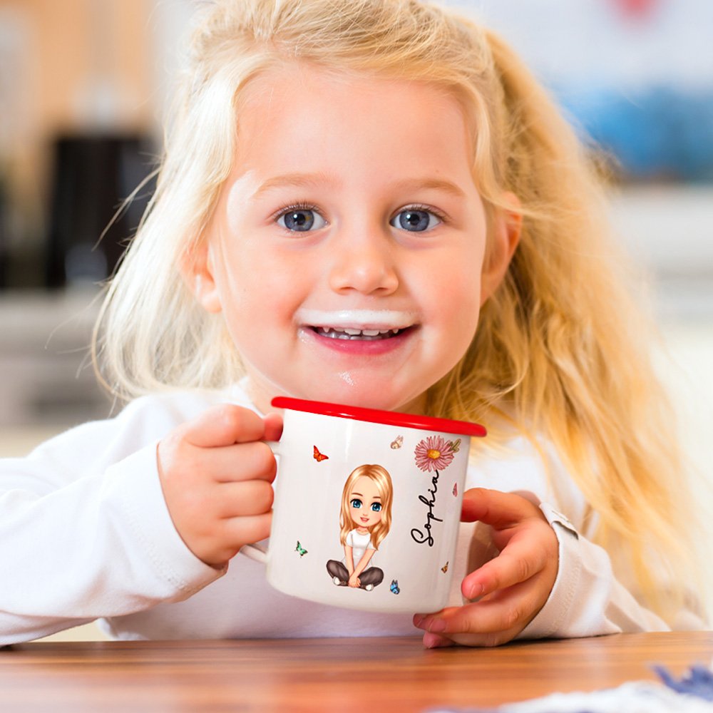 Fabricada con esmalte de alta calidad, esta taza es lo bastante resistente como para soportar los golpes y magulladuras del uso diario. Es ligera pero resistente, y el asa incluida es perfecta para las manos pequeñas. La superficie esmaltada es fácil de limpiar y no se astilla. Además, es apto para alimentos, ¡así que puedes estar tranquilo cuando tu hijo disfrute de su bebida favorita!