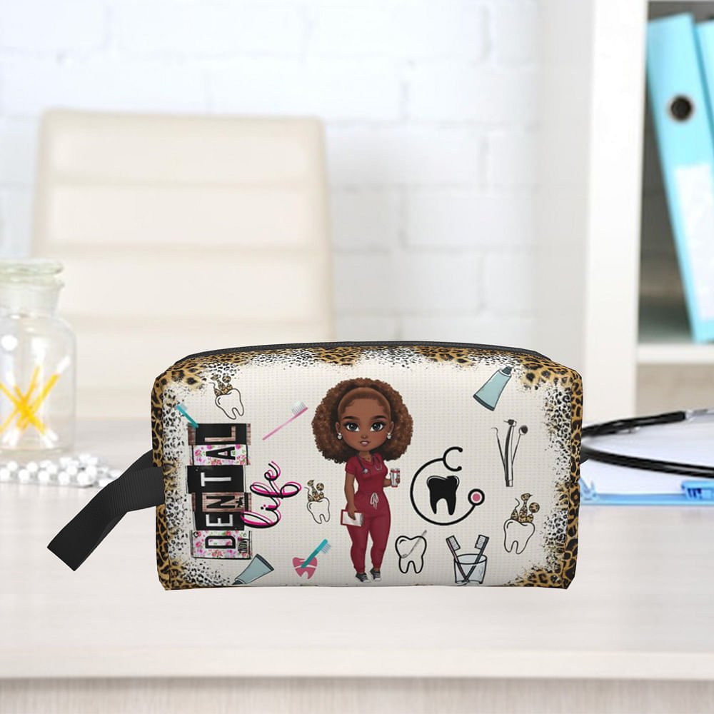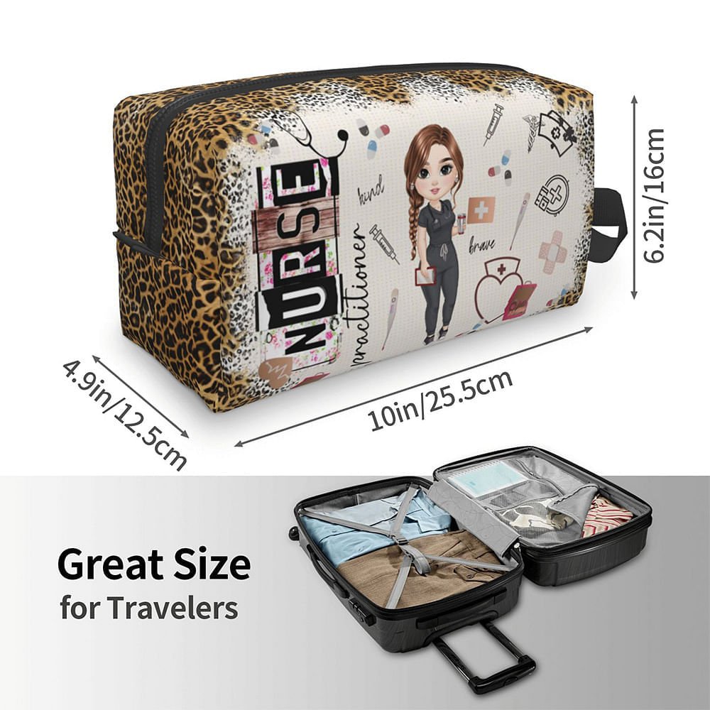 El neceser está hecho de poliéster, que es duradero, resistente al desgaste, resistente a las arrugas y fácil de limpiar. El cierre de cremallera garantiza que sus pertenencias estén seguras y protegidas.