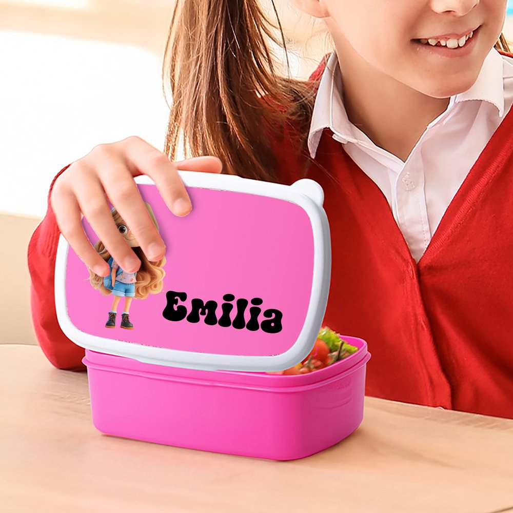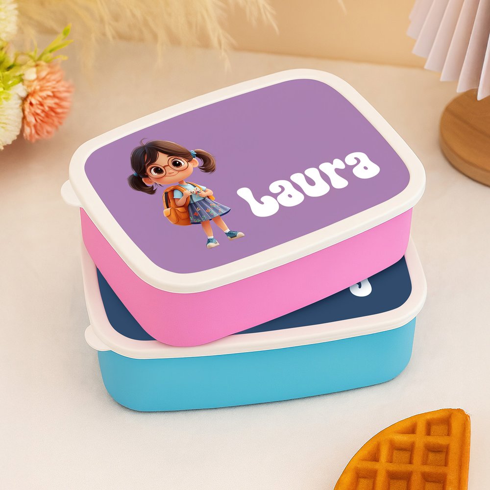 Inspirada en personajes de dibujos animados con niños que llevan mochilas, cuenta con 15 estilos para niños y 21 para niñas. También puedes elegir el color de la fiambrera (rosa/azul), el color de la tapa (18 colores disponibles) y personalizar el nombre de tu hijo o hija. Al tenerla en sus manos, la hora de la comida se convierte en un momento de juego con sus amigos de dibujos animados, lleno de ilusión y ritual.