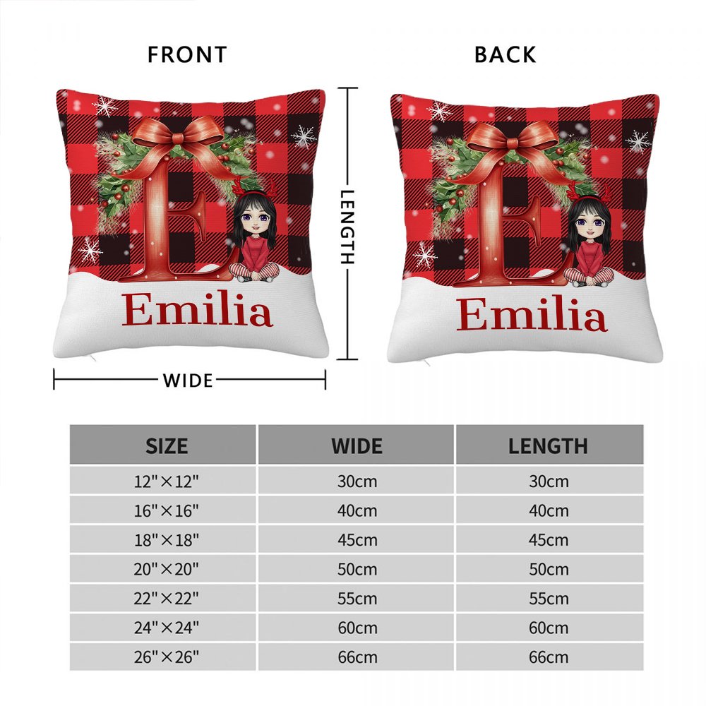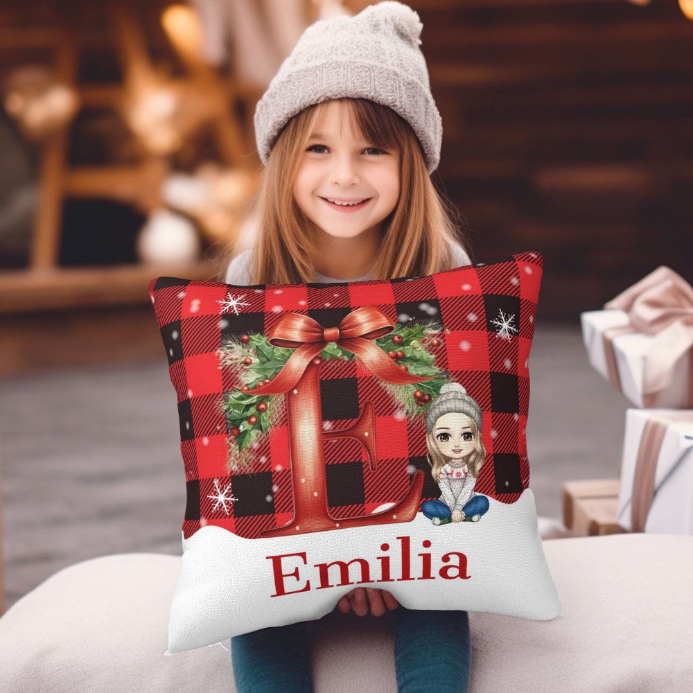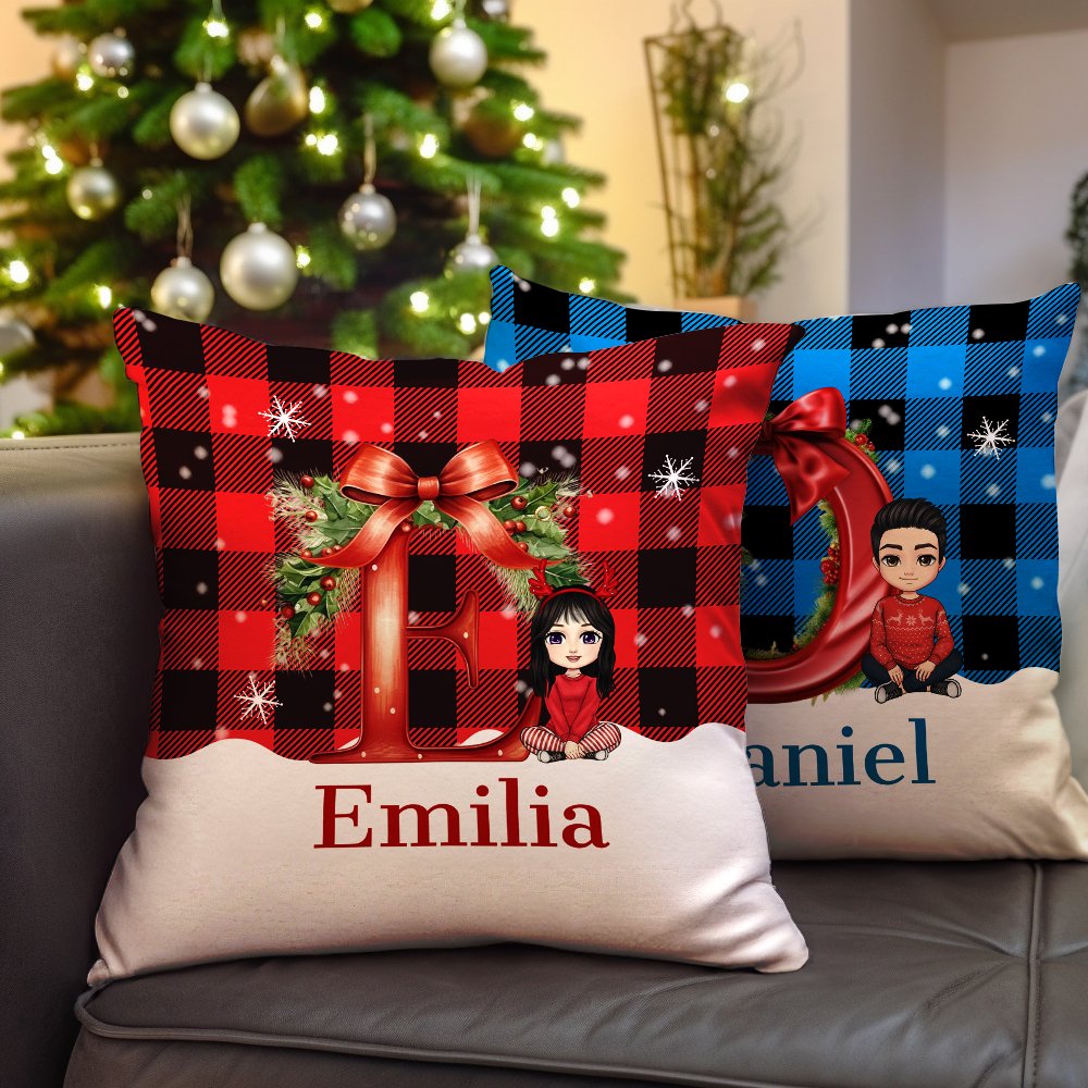 Esta funda de almohada tiene un tema navideño, combinando letras y elementos de personajes de dibujos animados, y utiliza un colorido estampado a cuadros como fondo para crear un fuerte ambiente festivo. El nombre de la persona está impreso en la funda de almohada para hacerla aún más distintiva.
