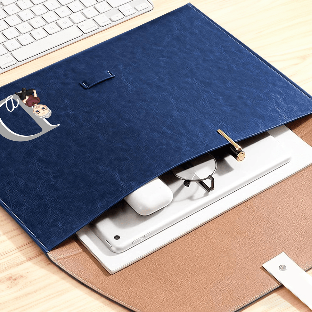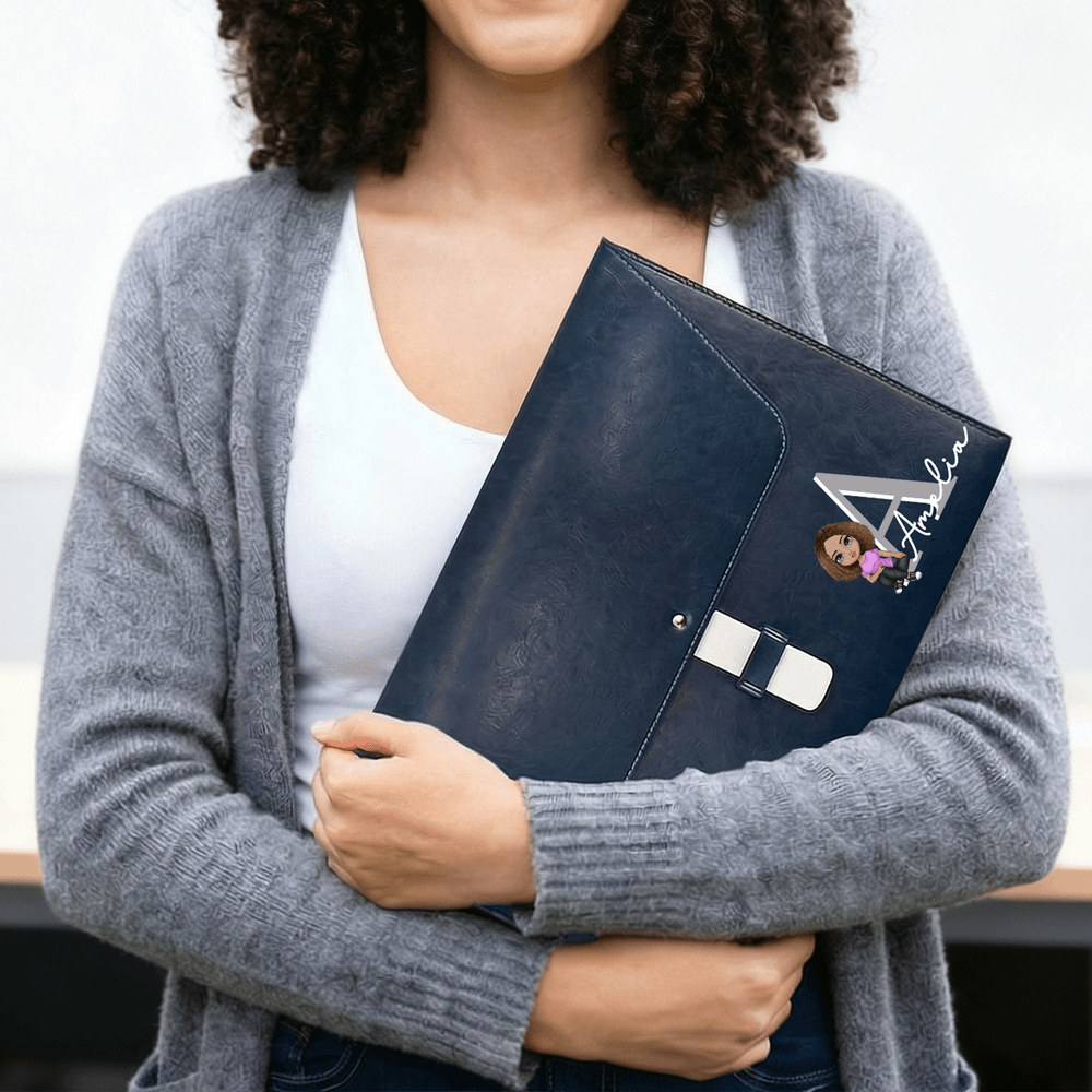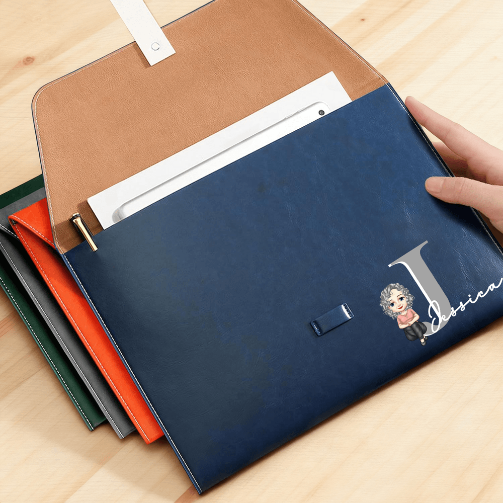 Caricatura Personalizada PU Carpeta de cuero Maletín con nombre y la inicial de negocios portátil Suministros Regalo de cumpleaños para el personal Colegas