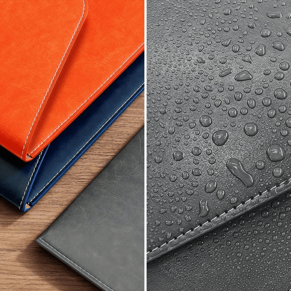 Fabricada en piel de PU de alta calidad, tiene un tacto suave y delicado, es ligera y fácil de transportar. Su diseño impermeable protege eficazmente los documentos de los daños causados por la humedad, mientras que su material resistente puede soportar su peso. Su gran capacidad permite guardar documentos A4 y de mayor tamaño, así como tabletas, teléfonos móviles, llaves, bolígrafos y otros objetos.