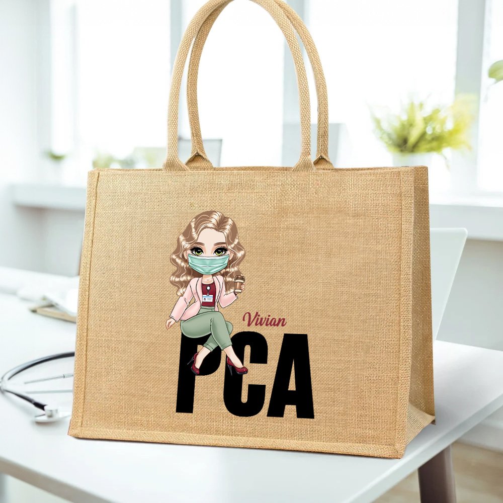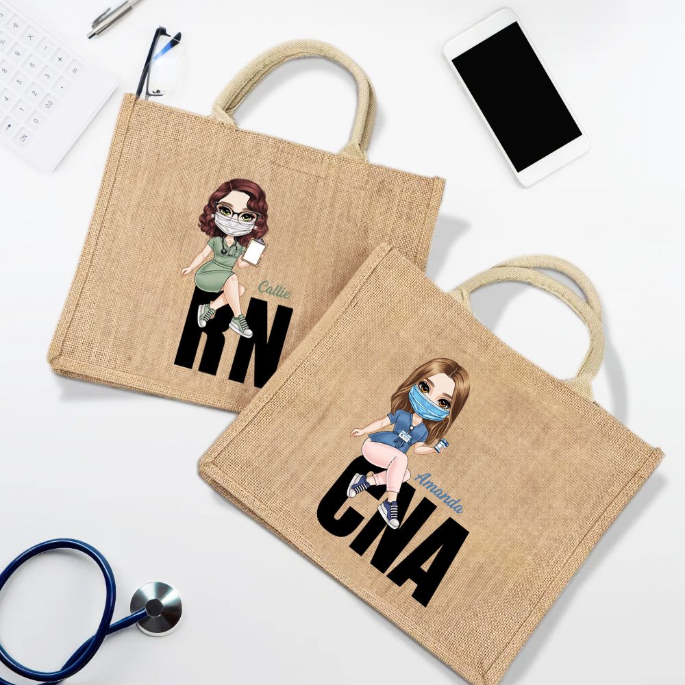 Esta bolsa de yute combina moda y funcionalidad con un diseño único. La imagen personalizada del personal médico en la bolsa no sólo es colorida y llena de personalidad, sino que también muestra su gusto único y su actitud vibrante ante la vida. Tanto si se trata de una abreviatura profesional como de un nombre personal, puede personalizarse según sus necesidades, haciéndole único entre la multitud.