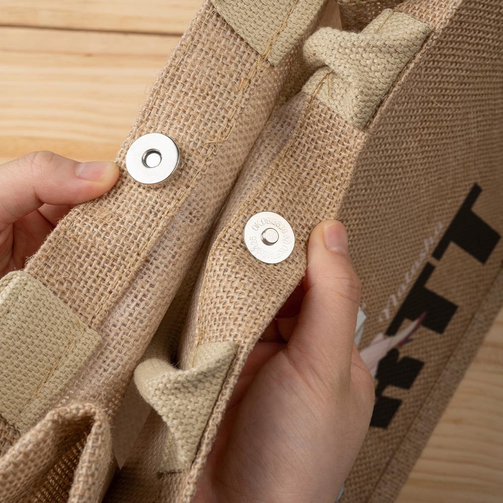 Fabricada con material de yute de alta calidad, esta bolsa es bonita y duradera, sin sustancias nocivas. Tiene un excelente soporte y un rendimiento duradero, puede reutilizarse, ayuda a reducir la demanda de bolsas de plástico y contribuye a proteger el medio ambiente. Ofrecemos diversas opciones de estilo, como bolsas abiertas, bolsas con hebillas magnéticas y bolsas con cremallera, para satisfacer diferentes necesidades.