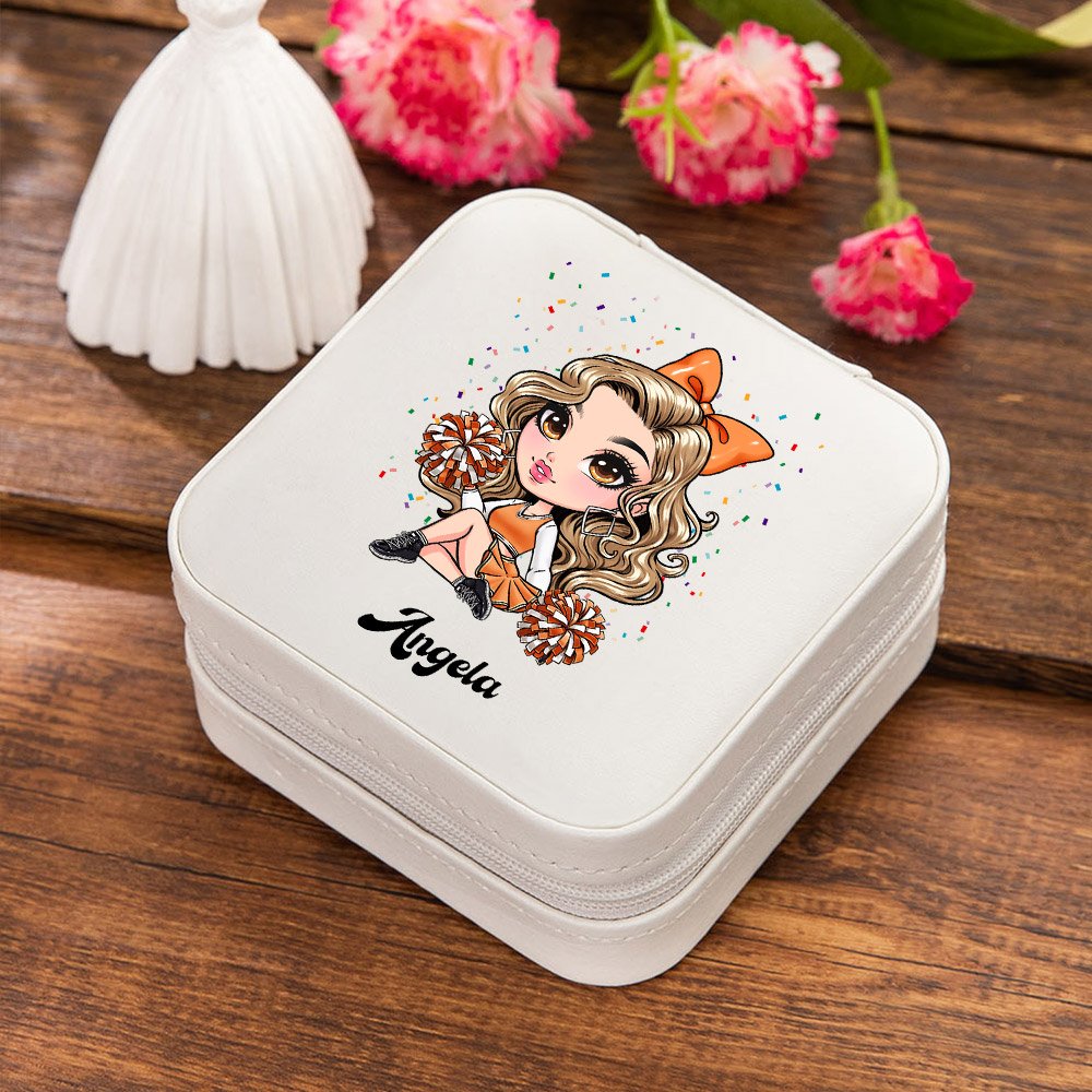Este joyero está especialmente diseñado para las animadoras. Las chicas animadoras llevan el pelo largo y ondulado y trajes de animadora, que son bonitos y encantadores, y muestran su vitalidad y entusiasmo. Puede añadir su nombre para convertirlo en un recuerdo único.