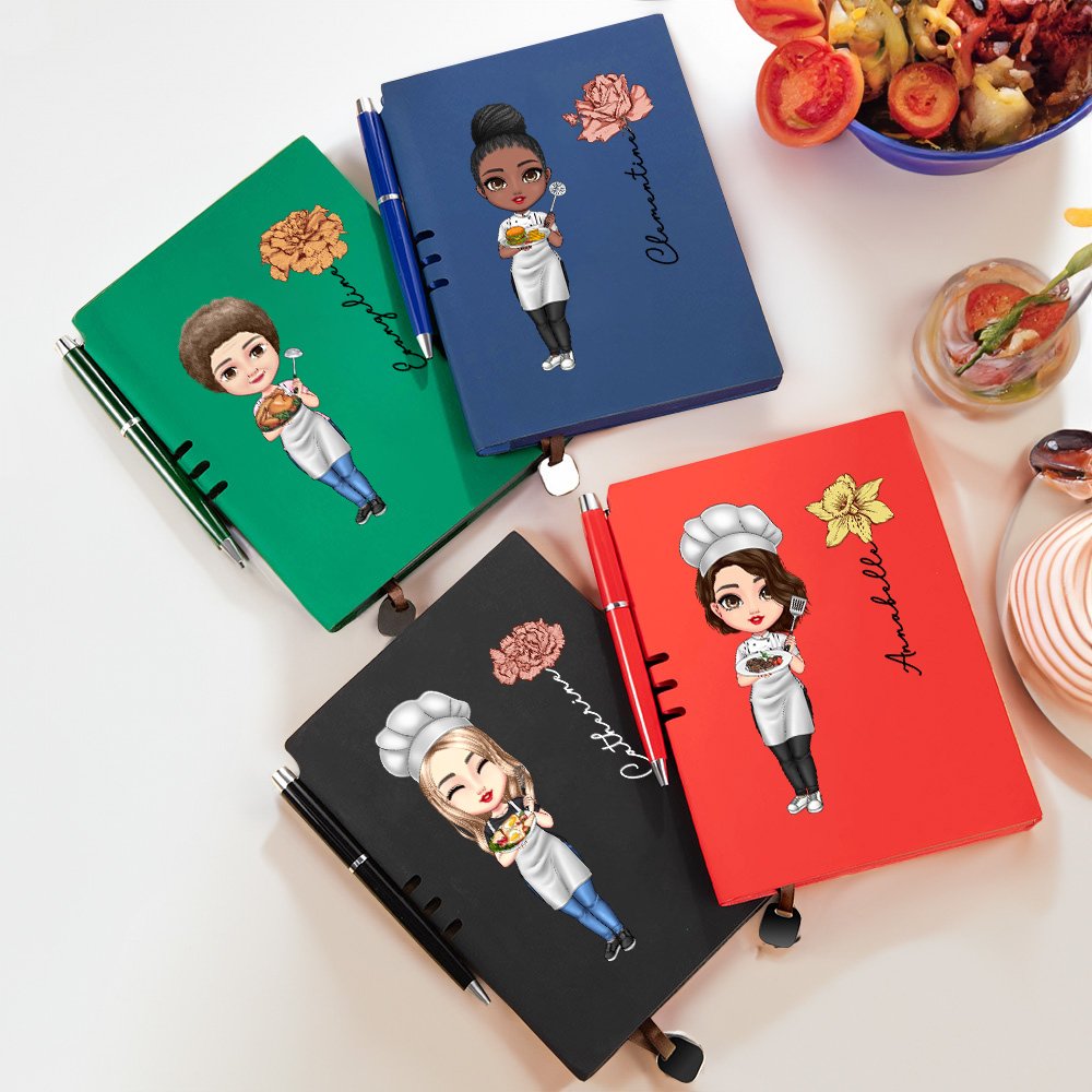 Este encantador set de cuaderno y bolígrafo A5 presenta un personaje de dibujos animados de una "Mamá cocinera" que sostiene su plato estrella, dando vida a la vibrante personalidad de tu madre o abuela. Junto con su flor de nacimiento y su nombre personalizado, este set se convierte en un regalo único y lleno de significado.