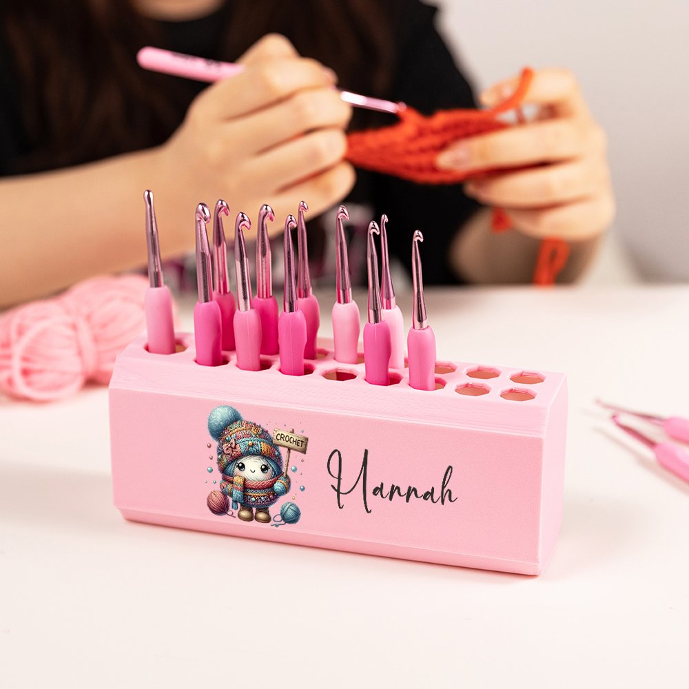 Esta caja de ganchillo personalizada es la solución perfecta para organizar tus ganchillos. Diseñada para albergar hasta 17 agujas, las mantiene ordenadas y añade un toque de fantasía a tu espacio de trabajo. Puedes personalizarla con tu nombre y añadirle un adorable dibujo de hilo, ¡para hacerla exclusivamente tuya!