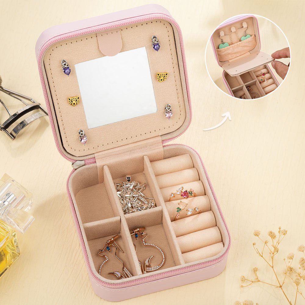 No sólo una caja de almacenamiento, esta caja de joyería tiene una división de espacio interno razonable, que puede acomodar una variedad de joyas, como pendientes, anillos, collares, etc, para satisfacer las necesidades diarias de almacenamiento. El espejo incorporado le permite organizar su maquillaje en cualquier momento, ya sea en casa o de viaje; es muy cómodo de usar. Es pequeño y ligero, adecuado tanto para colocarlo en el tocador como para llevarlo consigo, convirtiéndose en su compañero íntimo cuando viaja.