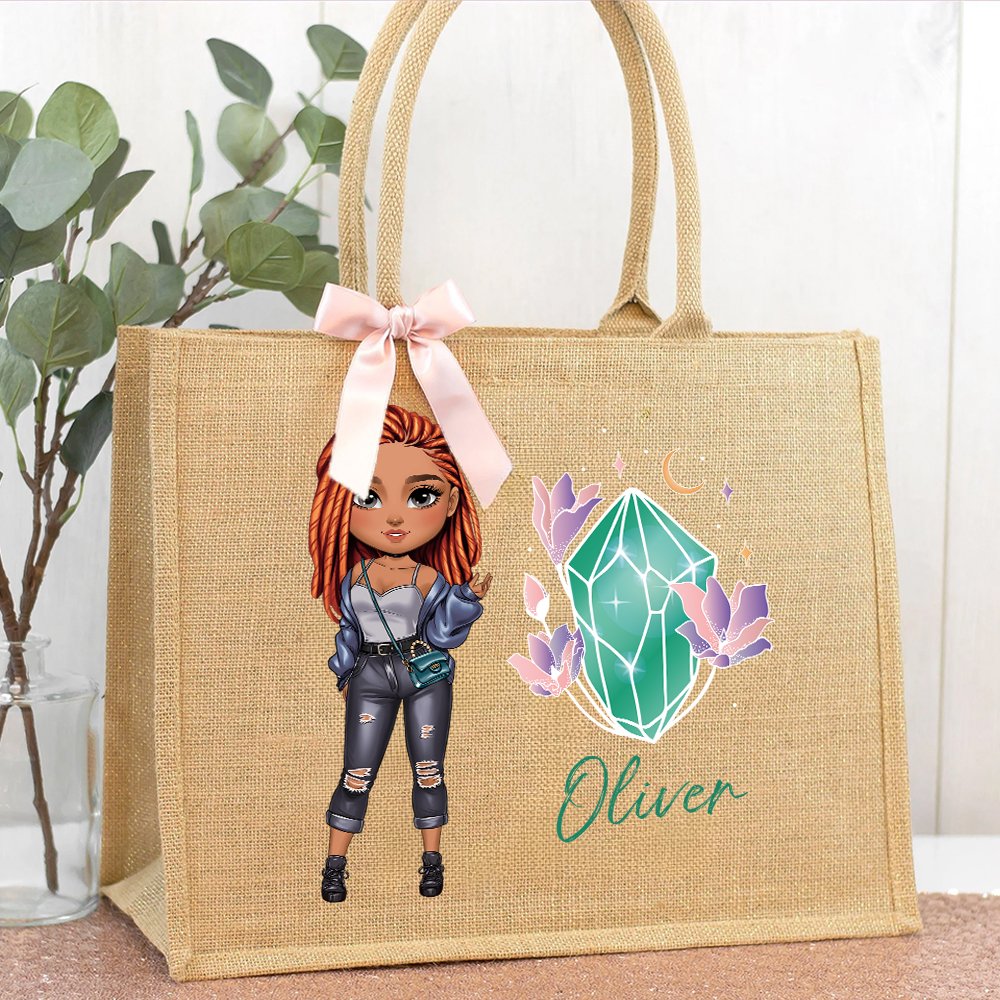 Este bolso de mano se puede personalizar con una elegante imagen prediseñada de niña basada en su imagen y combinada con una piedra de nacimiento del mes de nacimiento. Además, puedes elegir el modelo que sólo lleva impresa la piedra de nacimiento y el nombre. La piedra de nacimiento está decorada con la luna, estrellas y flores de colores, haciendo que todo el diseño sea más elegante y romántico.