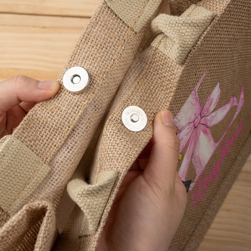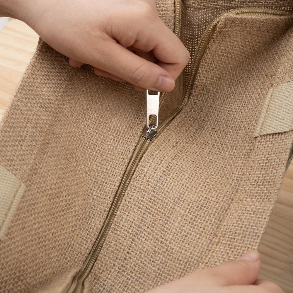 Nuestras bolsas están hechas de yute ecológico, que tiene un aspecto elegante y se ajusta a los principios de protección del medio ambiente. El yute es conocido por ser duradero, transpirable y resistente al desgaste. Es fácil de llevar y perfecto para las compras diarias, los viajes o cualquier aventura.