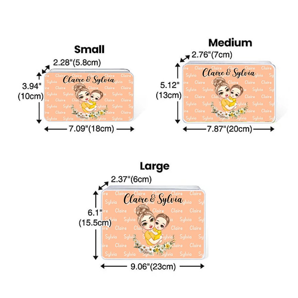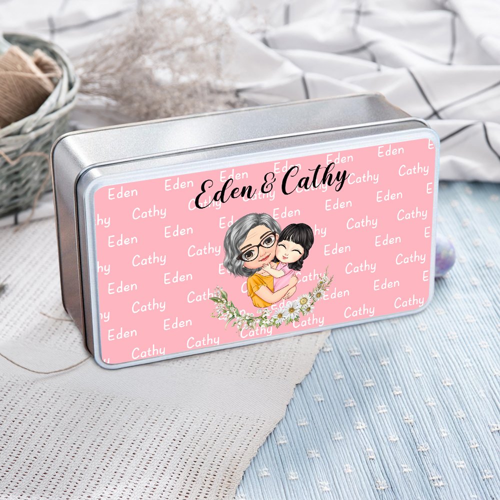 Esta lata de almacenaje presenta un simpático dibujo animado de una madre que sostiene cariñosamente a su hijo, rodeada de una bonita corona de cumpleaños. También puede añadir su nombre, y el fondo es un diseño de nube con el nombre, que es aún más único, por lo que es un recuerdo conmovedor que captura el verdadero significado del amor familiar.