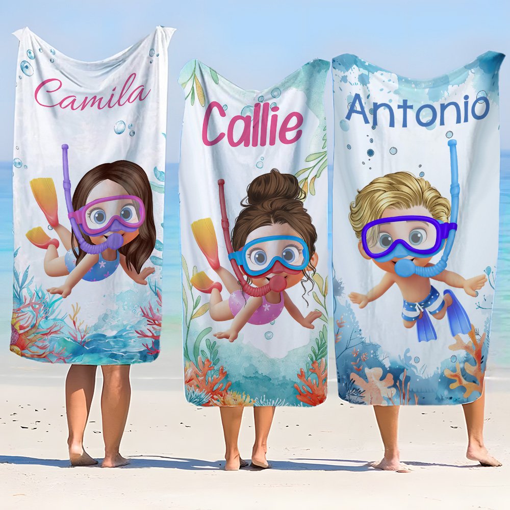 Con su diseño divertido de buzo y la opción de personalizarla con un nombre y personaje, esta toalla es un regalo pensativo para cumpleaños o fiestas, ideal para niños, niñas y personas de todas las edades. Es una forma encantadora de mostrar tu cariño, haciendo que cada momento de verano sea más especial y memorable.