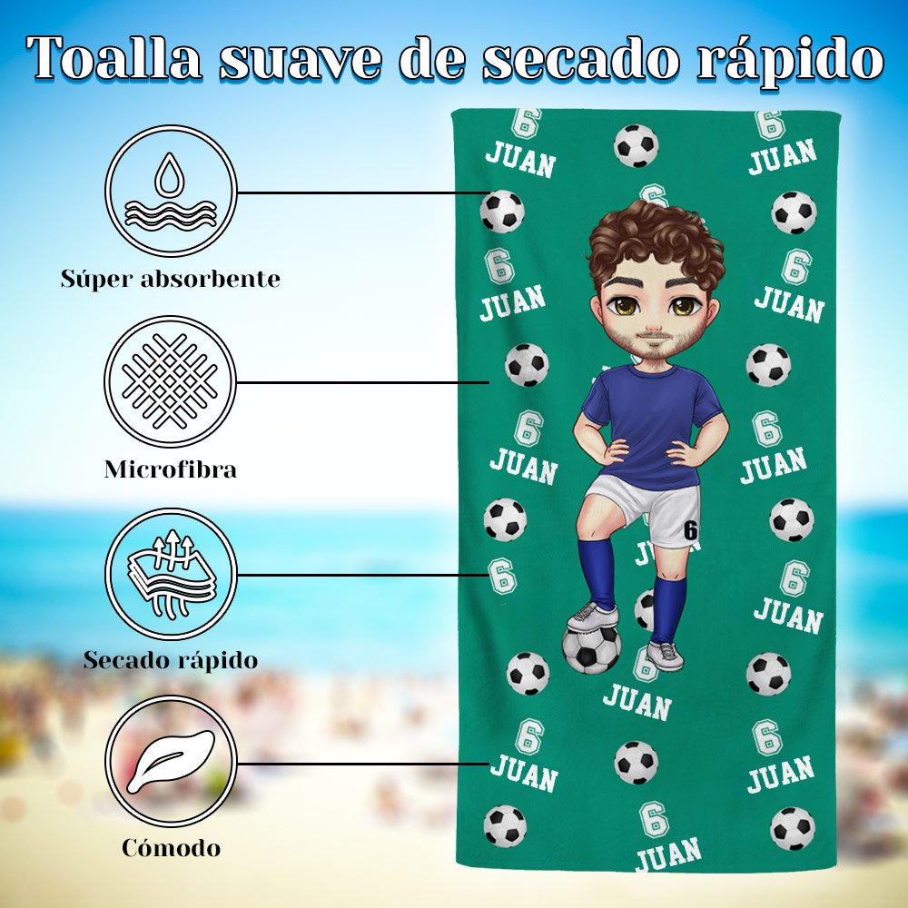 Esta toalla de playa es un regalo ideal para los fanáticos del fútbol, ya sea un cumpleaños, una festividad o un evento de equipo, transmitirá tus pensamientos. El diseño personalizado hará que el destinatario se sienta especialmente cuidado y atendido, convirtiéndola en un gran compañero para su tiempo deportivo o de ocio. Ya sea para un amigo, un miembro de la familia, o como recuerdo de equipo, esta toalla será una elección memorable.