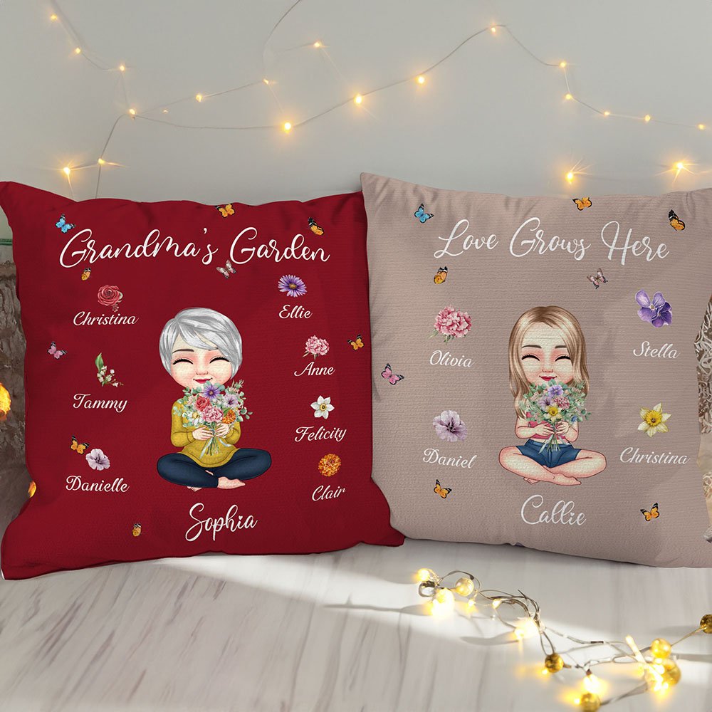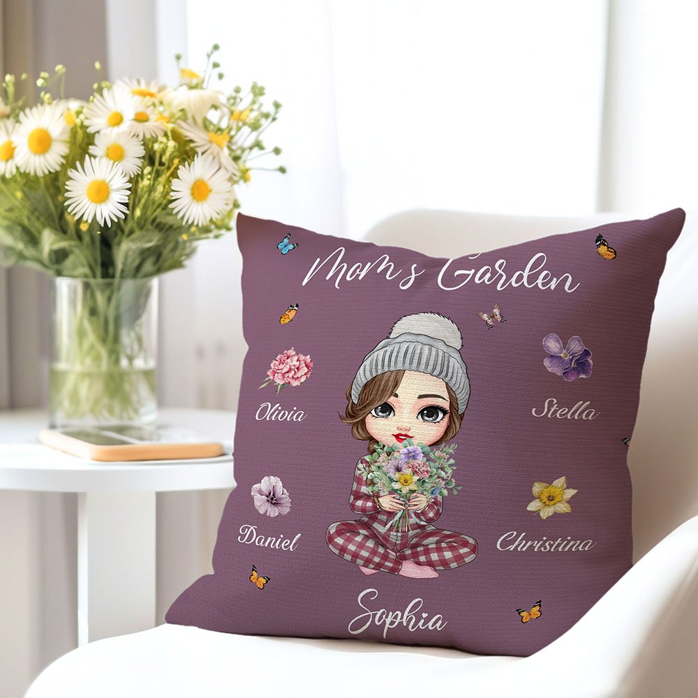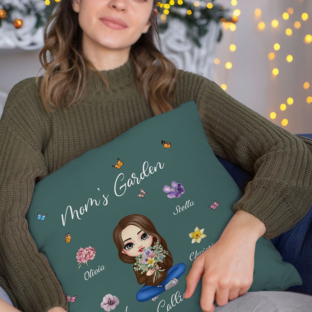 Esta encantadora funda de almohada presenta un diseño único de mujer de dibujos animados combinado con un ramo de flores de nacimiento. Puedes personalizarla con el nombre del destinatario y los nombres y flores de 1-8 niños, convirtiéndola en un regalo único para mamá o la abuela.
