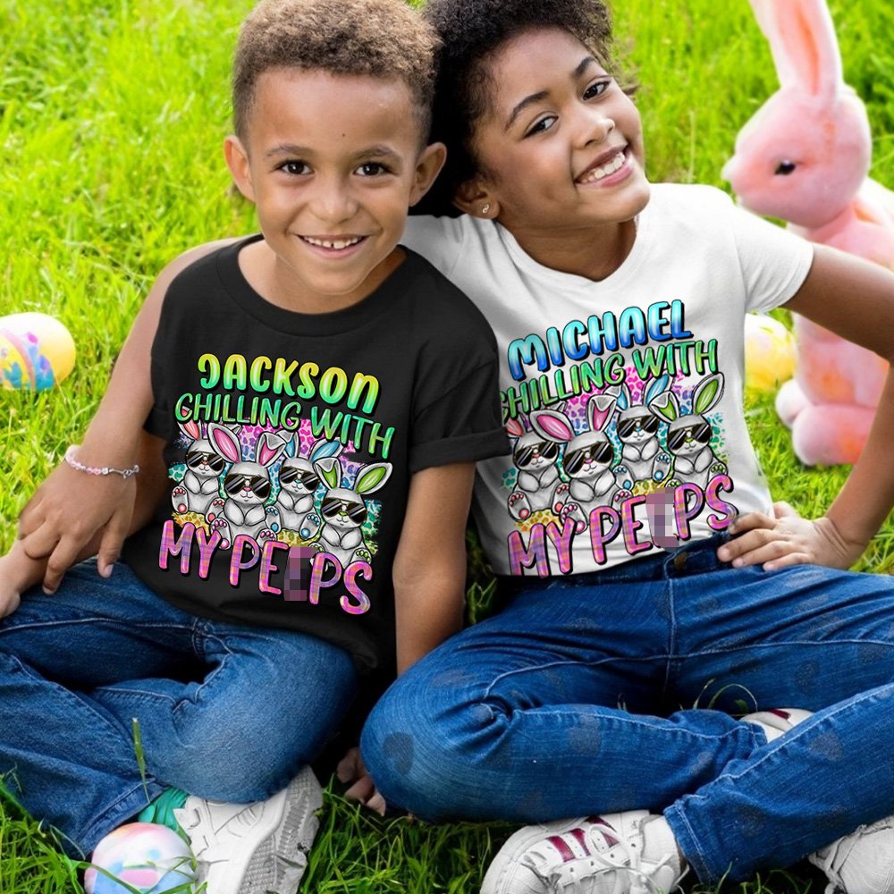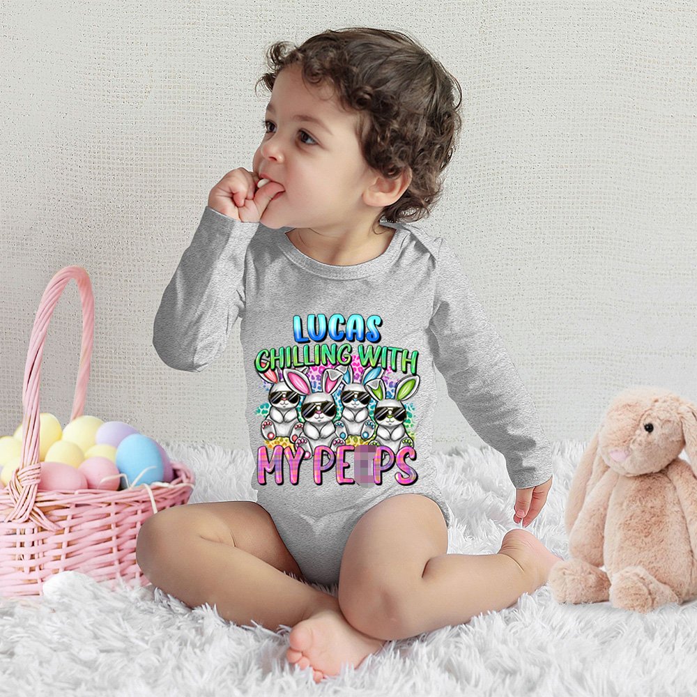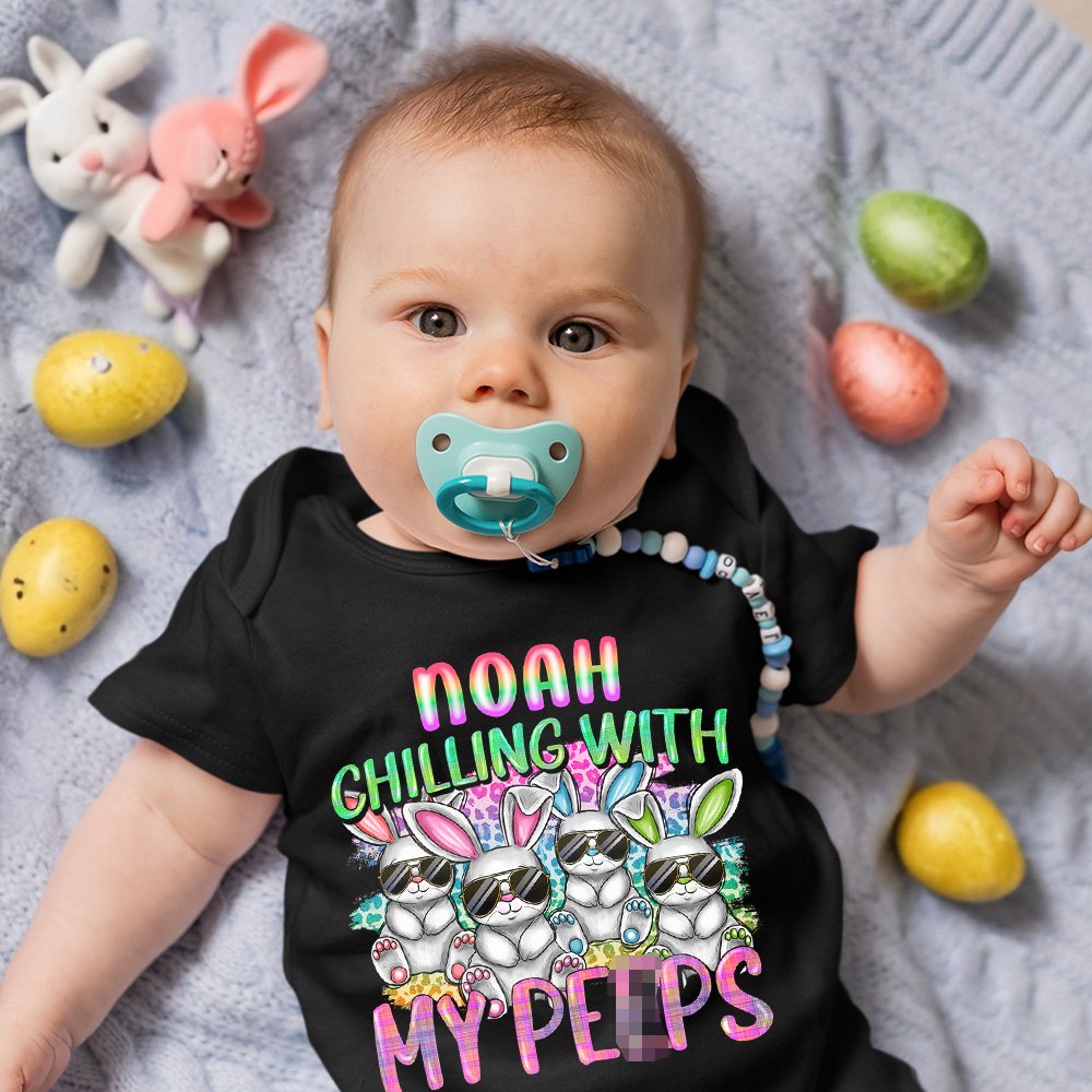 Haz que estas camisetas de Pascua, sudaderas y bodies para bebés sean muy especiales personalizándolas con el nombre de un miembro de la familia.