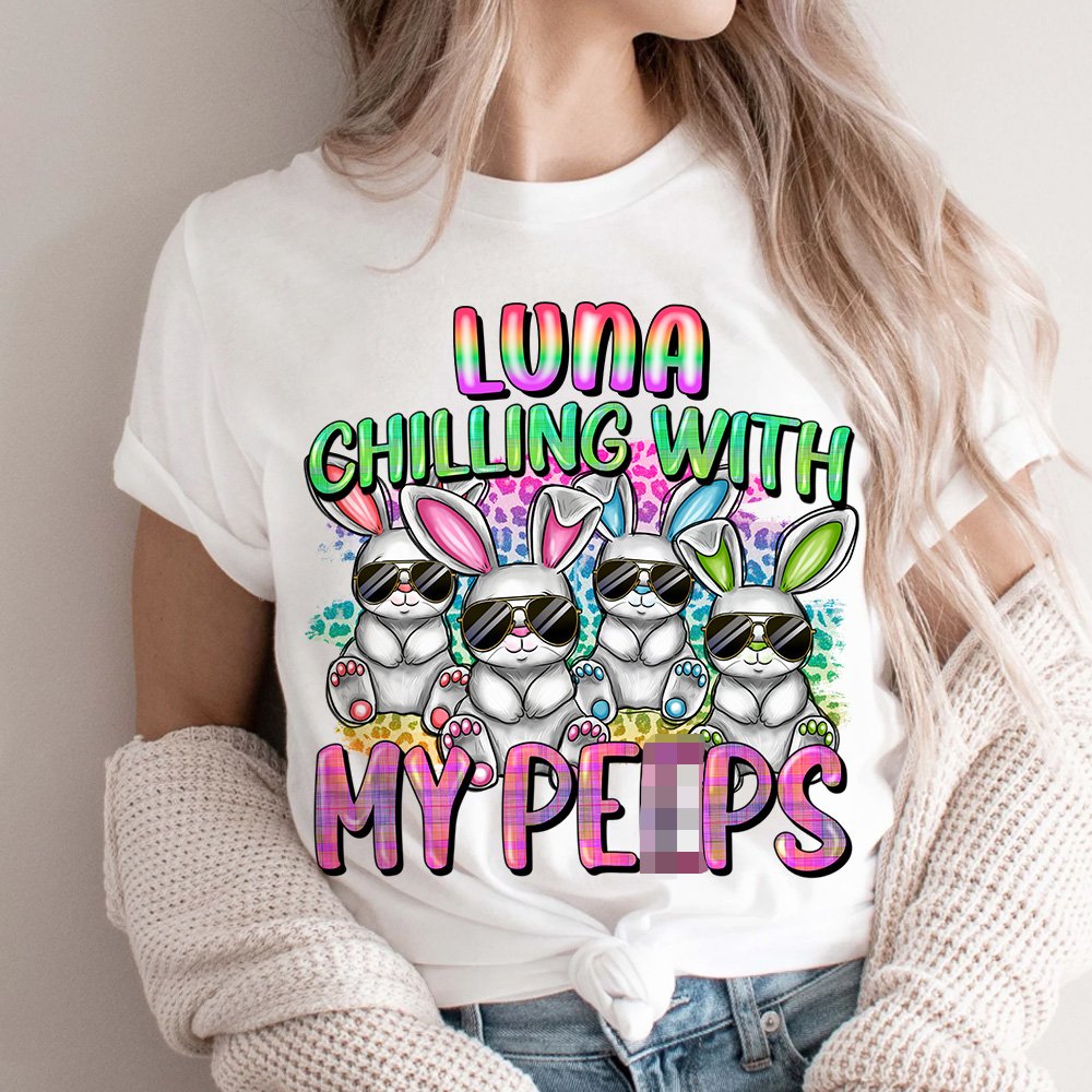 La ropa presenta una divertida combinación de letras de colores, una cita graciosa y conejitos molones, creando un conjunto visualmente impactante y llamativo. Los conejitos con gafas de sol añaden un toque extra de ternura al diseño, haciéndolo perfecto para Pascua o cualquier ocasión en la que se desee un ambiente divertido y caprichoso.