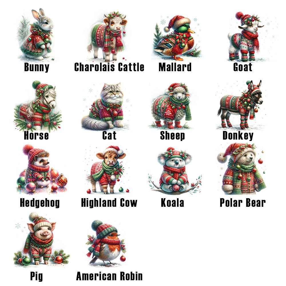Con 14 adorables diseños de animales, cada uno de ellos ataviado con festivos jerséis navideños, que crean un caprichoso ambiente festivo. Las simpáticas ilustraciones de animales atraen a los niños sin perder el encanto navideño. La variedad de opciones de animales permite una selección personalizada basada en las preferencias individuales, viene con una pequeña tarjeta.