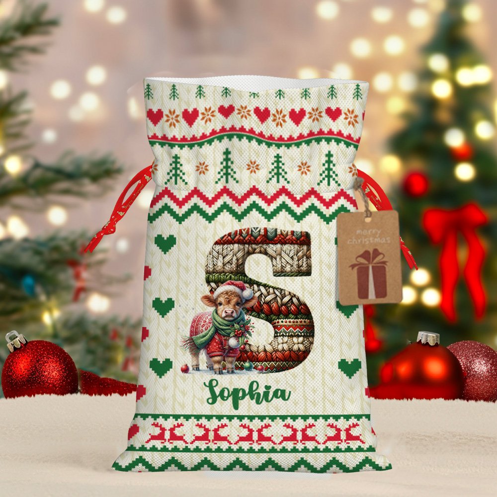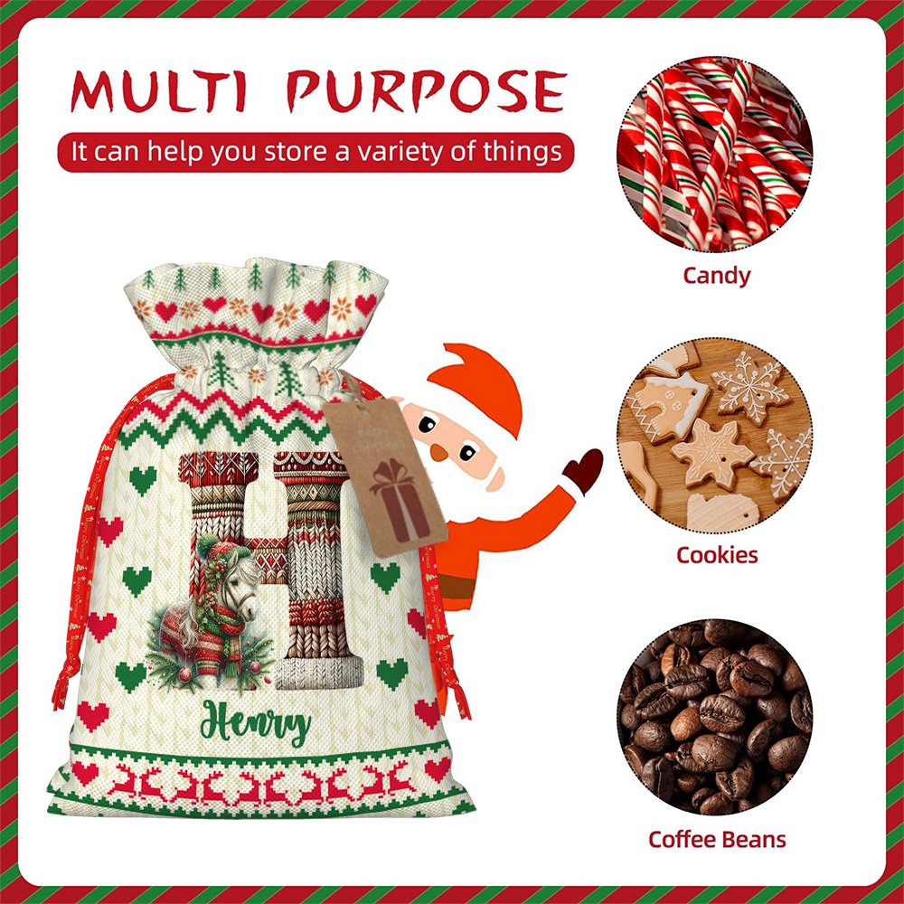 Personalizada de Navidad de punto suéter de animales bolsa de cordón con el nombre y la inicial de regalo de Navidad para los niños de la familia