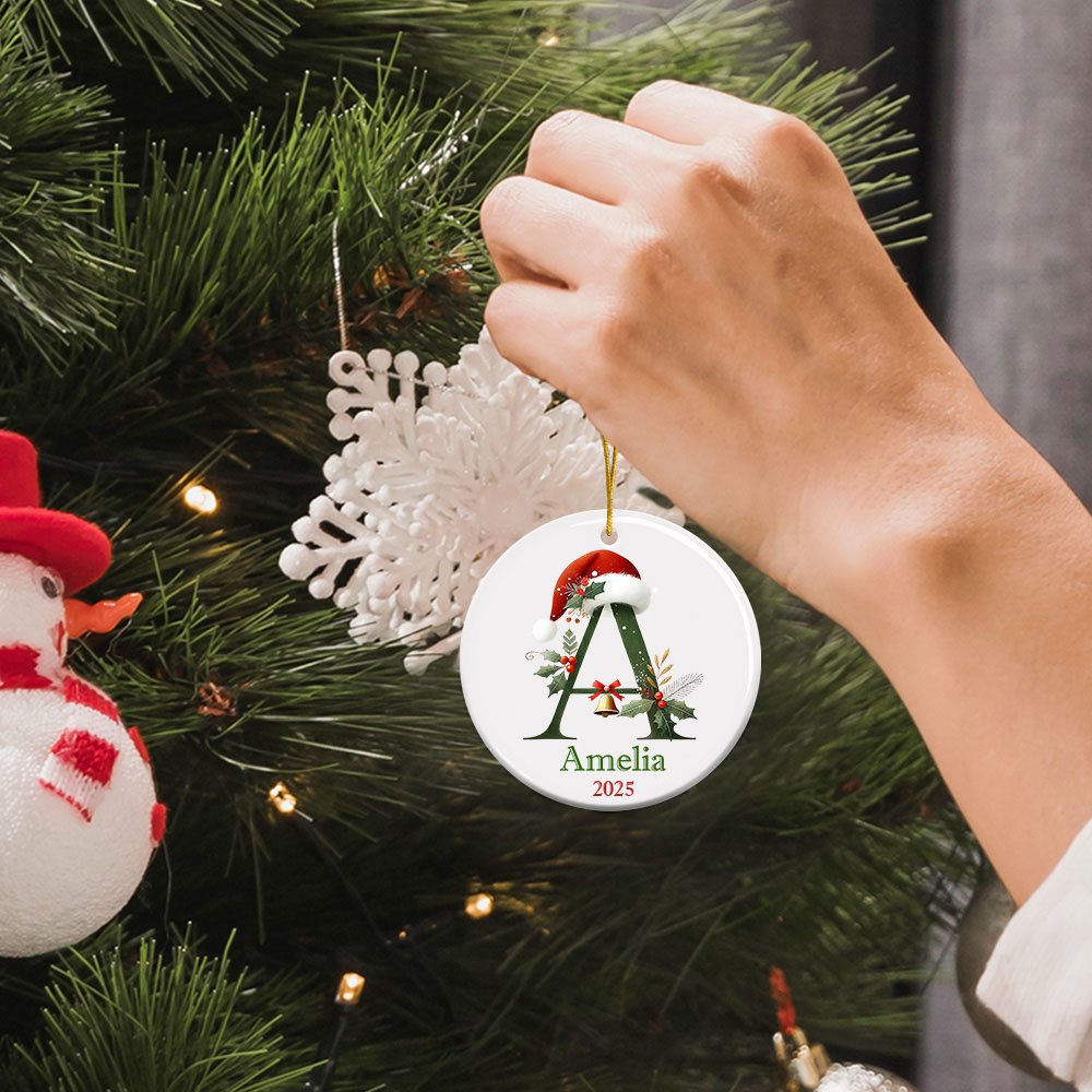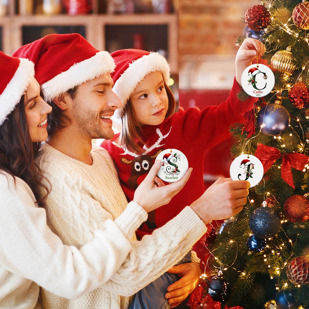 Este exclusivo colgante redondo de cerámica con decoración de árbol de Navidad está diseñado para la temporada navideña y viene con 26 bonitos dibujos de letras navideñas. Cada letra lleva un pequeño gorro navideño y una campana, creando un fuerte ambiente festivo. Los usuarios pueden personalizar su nombre o el de su familia en la pieza de cerámica, haciendo que cada colgante sea único.