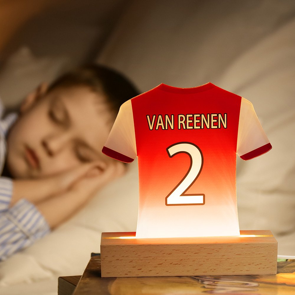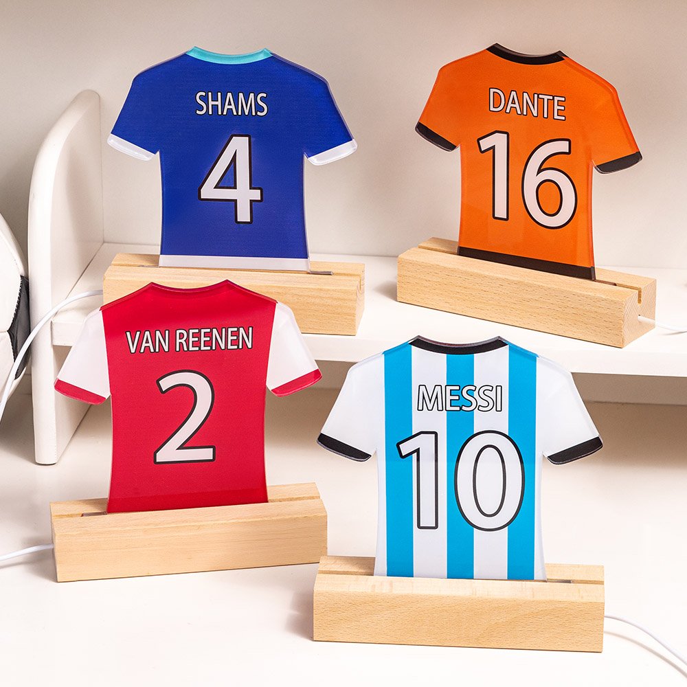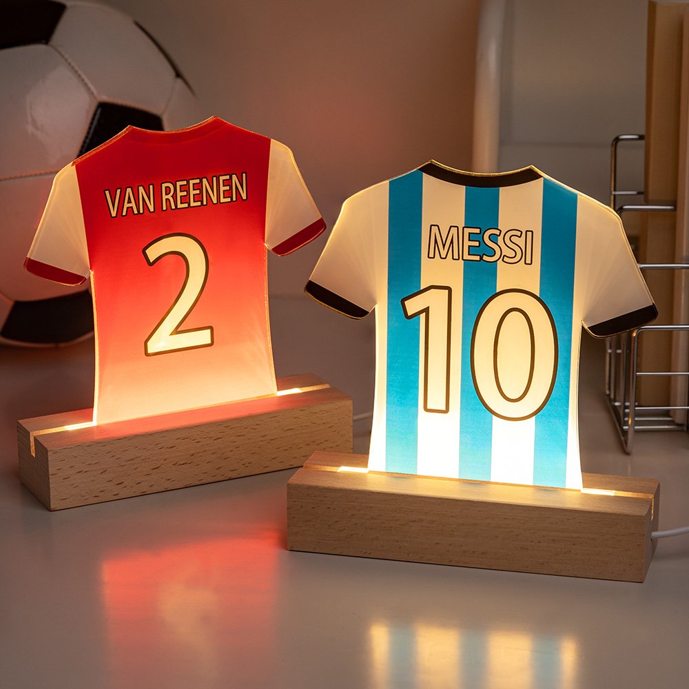 El panel de esta luz nocturna está diseñado en forma de camiseta de fútbol, incluidos los 16 estilos de camiseta de equipos conocidos, que son clásicos y únicos. Puedes personalizar tu nombre y número para crear un recuerdo significativo.