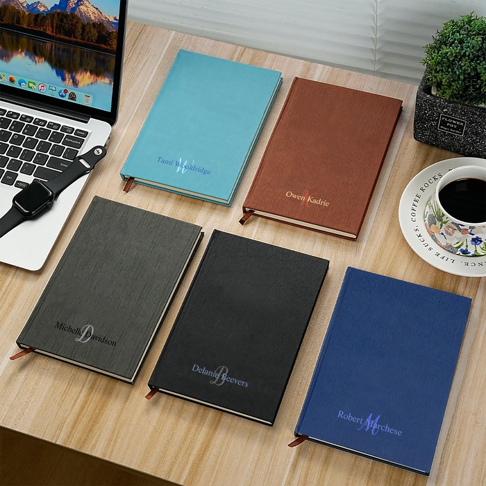 Nuestros clásicos cuadernos personalizados con monograma destacan por su diseño único y elegante. No sólo se pueden personalizar sus iniciales, sino también su nombre, convirtiéndolo en un accesorio único que refleja su estilo y gusto. Ya sea en su escritorio o en su bolso cuando viaja, desprende un aire sofisticado y profesional.
