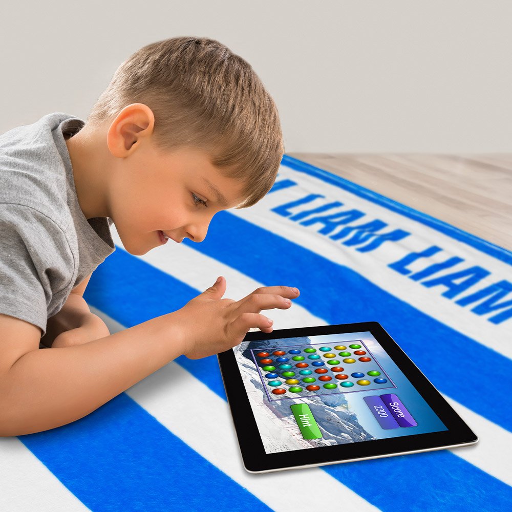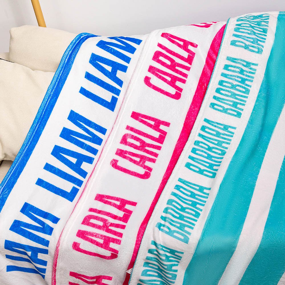 Mantente calentito y acogedor con nuestra manta a rayas clásica personalizada hecha de material de franela ultrasuave. Haz que esta manta sea realmente tuya personalizándola con un creativo diseño con tu nombre. Tanto si es para ti como para un ser querido, añadir un toque personalizado la convertirá en un preciado recuerdo.