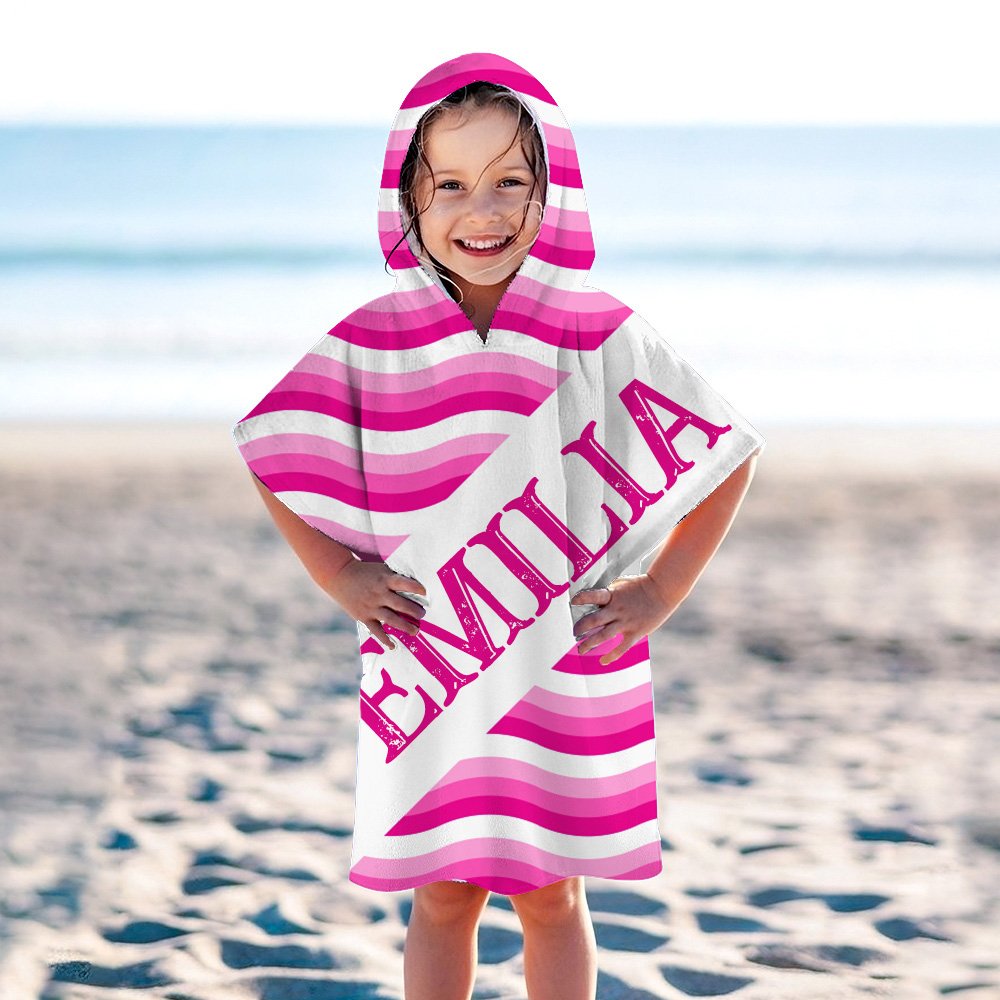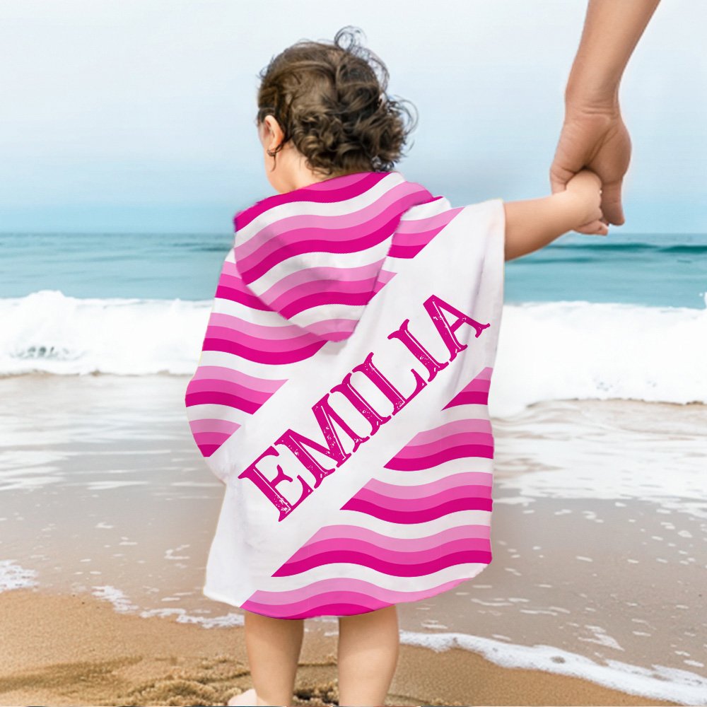 Esta toalla de playa para niños presenta un tema de rayas onduladas y ofrece 17 opciones de colores vibrantes para elegir, captando la atención de tu hijo/a al instante. Puedes personalizar las combinaciones de colores de las rayas para que coincidan con sus preferencias y agregar su nombre, haciendo que cada toalla sea única y refleje su personalidad y estilo.