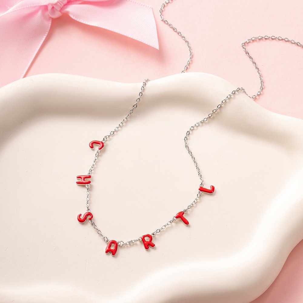Elaboradas con materiales de alta calidad y un exquisito trabajo artesanal, las letras no sólo son vibrantes y duraderas, sino también suaves y delicadas al tacto. La cadena está hecha de latón o plata de ley, lo que garantiza su durabilidad y resistencia al desgaste para llevarla cómodamente a diario.