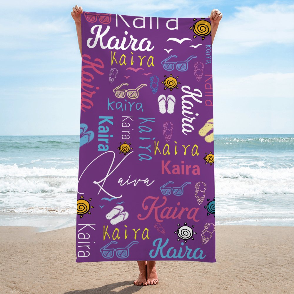 Esta toalla de playa presenta patrones veraniegos, incluyendo varios personajes artísticos, gafas de sol, gaviotas, el sol y más. Estos dibujos frescos y bonitos añaden un toque de color veraniego a la toalla de playa. Las toallas de playa también tienen una variedad de opciones de color, incluyendo colores brillantes de verano y tonos frescos y elegantes, para satisfacer las preferencias y necesidades de diferentes personas. También puede personalizar el nombre de la toalla de playa según sus necesidades para hacerla aún más única.