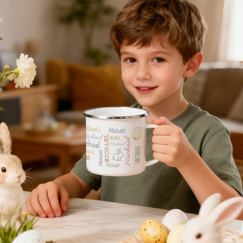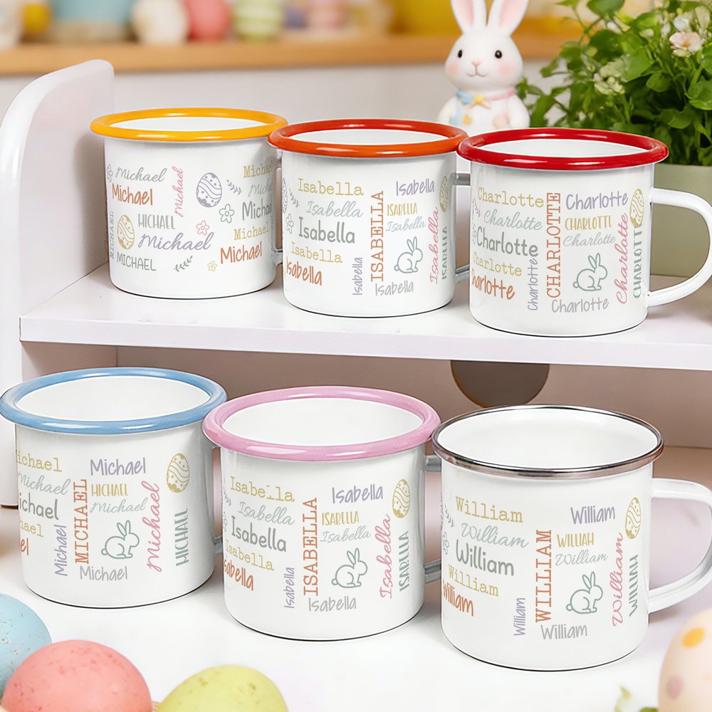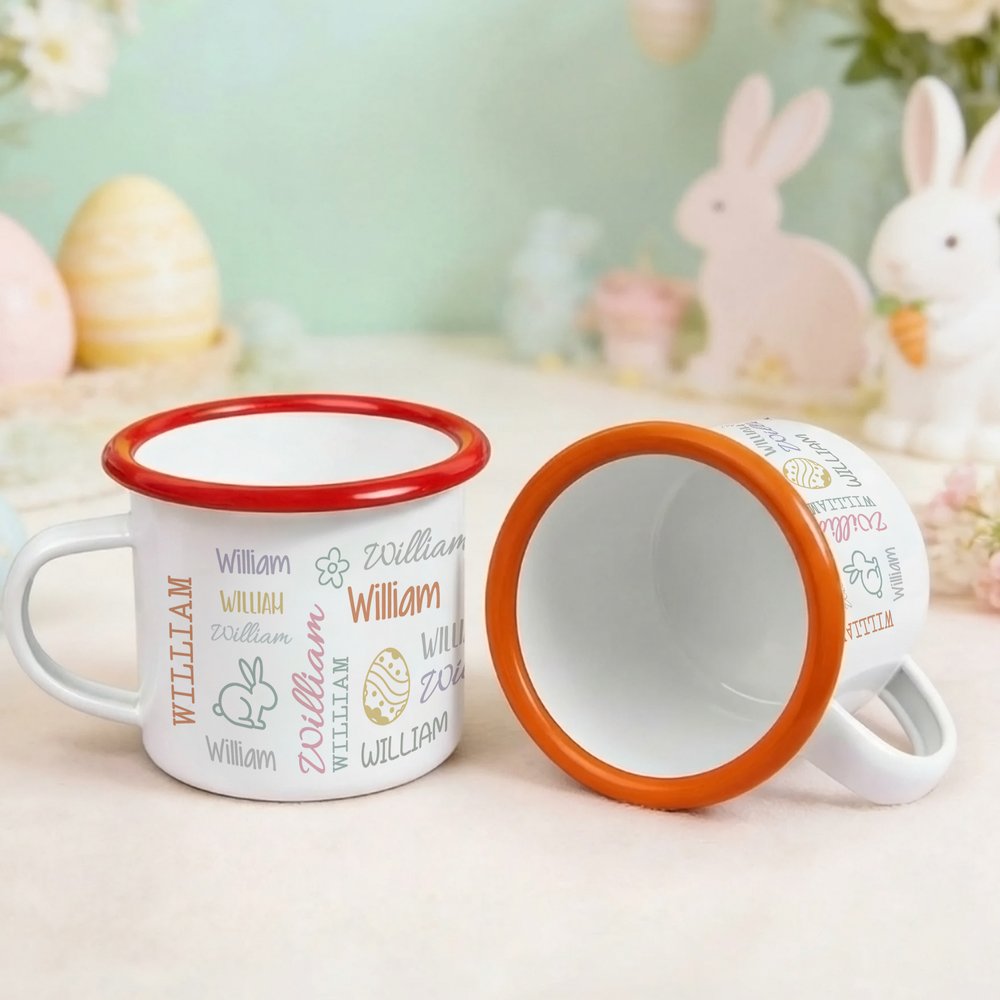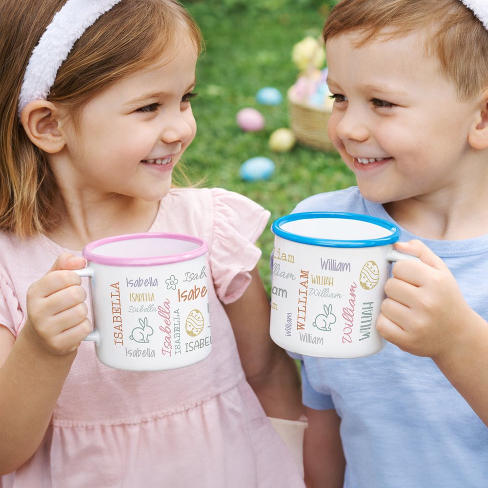 Taza esmaltada de 12 oz con nombre de uso diario Feliz Pascua Regalo para niños
