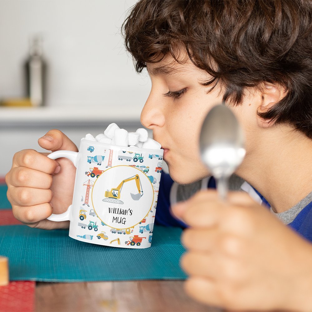 Esta taza personalizada es un regalo fantástico para los niños a los que les encanta todo lo relacionado con la construcción. Con 15 opciones de vehículos diferentes para elegir, puedes personalizarla con su nombre y su vehículo de construcción favorito, añadiendo un toque especial que les hará sentirse muy especiales.