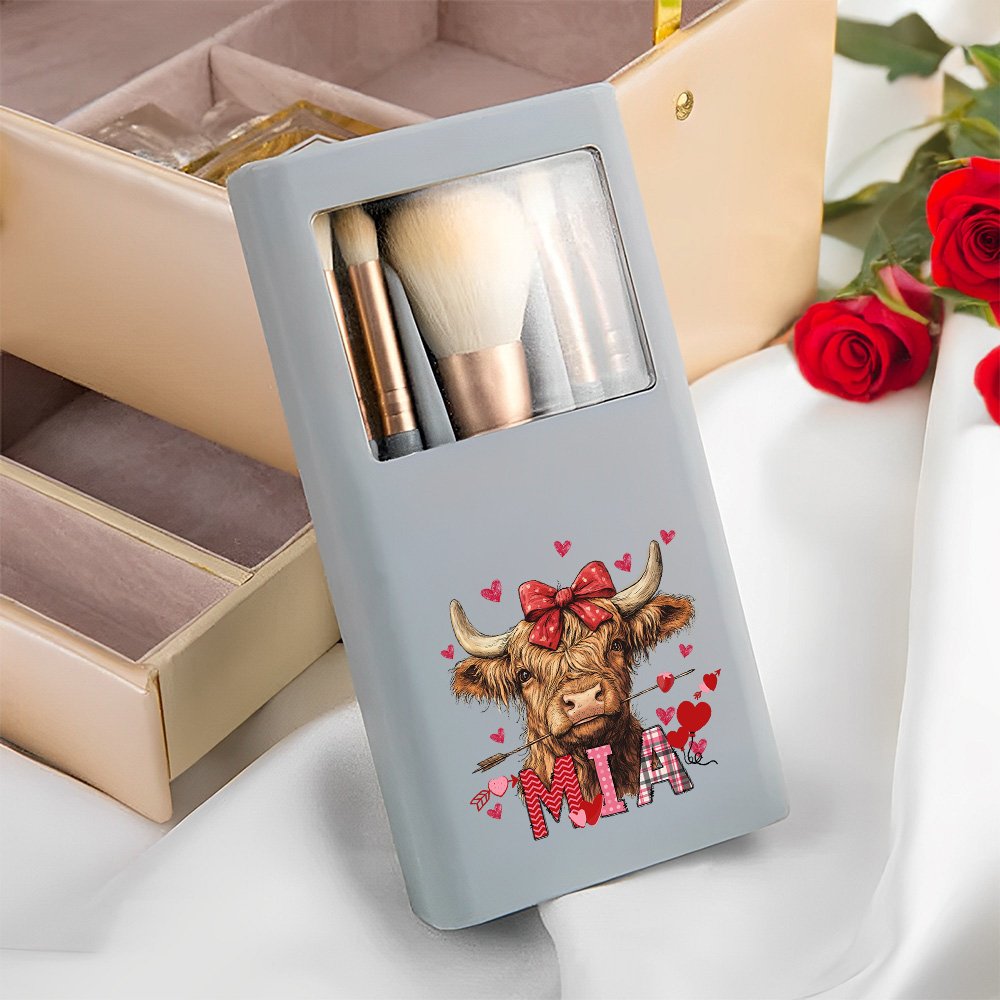 Este estuche para brochas de maquillaje con su delicado diseño de una vaca de las Highlands. El corazón está estratégicamente colocado en el centro del joyero y hay dos estilos de vaca Highland para elegir, también puedes añadir tu nombre o apodo para crear una pieza única.