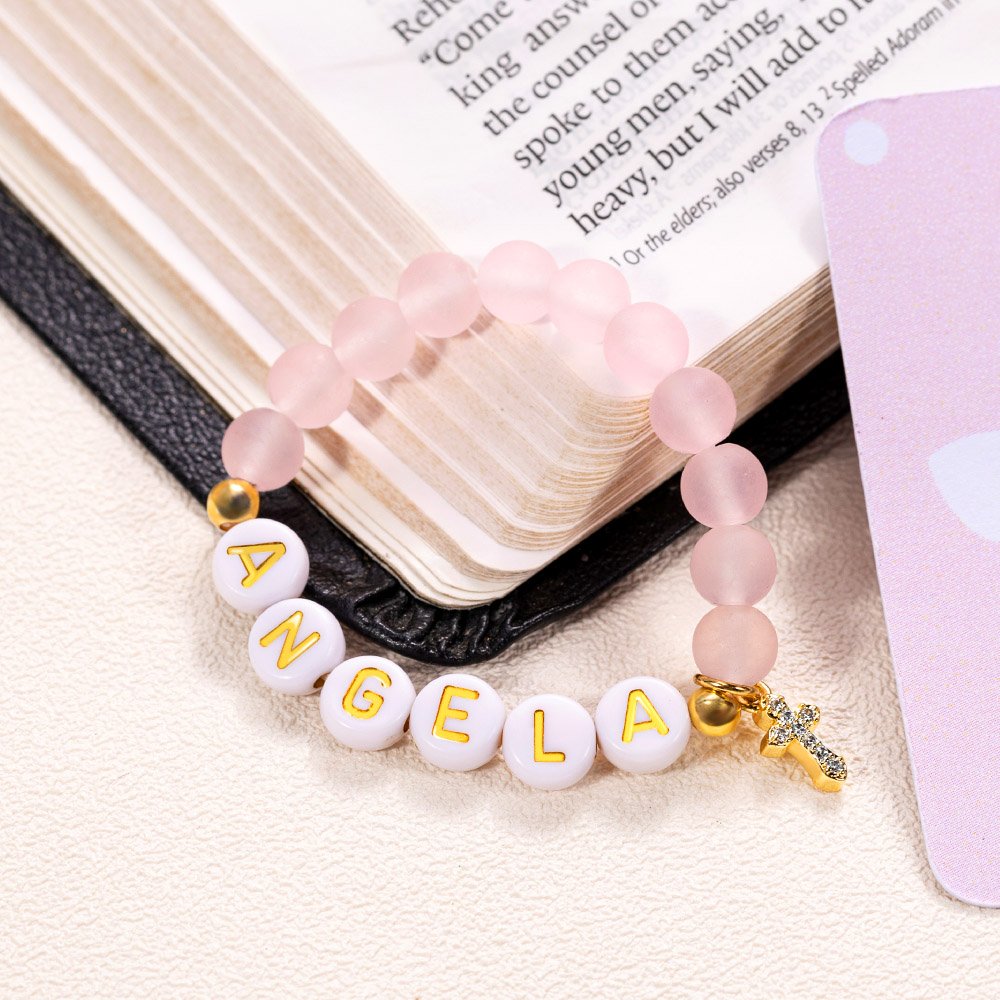 Característica: | Duradera, elástica, cuarzo rosa, cuenta de letras, joyería de cruces |