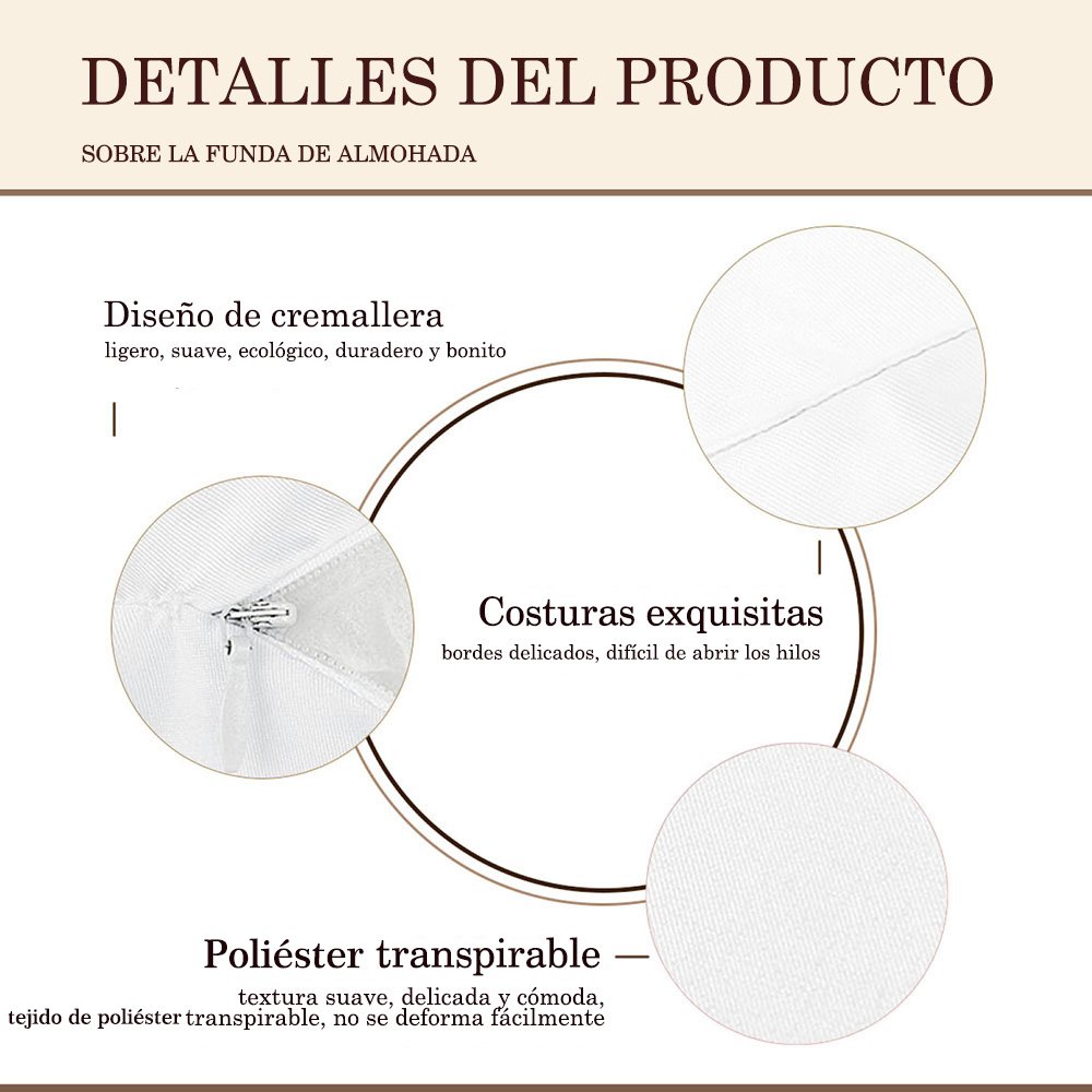 Esta funda de almohada está hecha de un cómodo tejido de poliéster suave al tacto. Su textura suave mejora la comodidad general y te hace sentir cómodo mientras descansas. El diseño de cremallera invisible garantiza una apertura y cierre suaves. Introduce y retira la almohada de forma rápida y sencilla, para que puedas cambiarla o lavarla cómodamente.