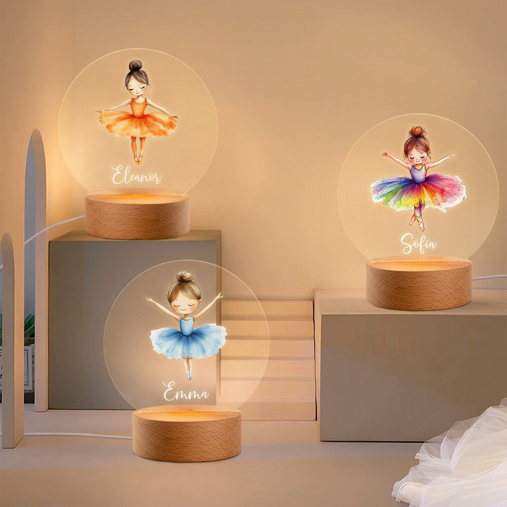 Lámpara de noche LED acrílica personalizada con nombre y base de madera para niñas bailarinas Regalo de cumpleaños para amantes del ballet