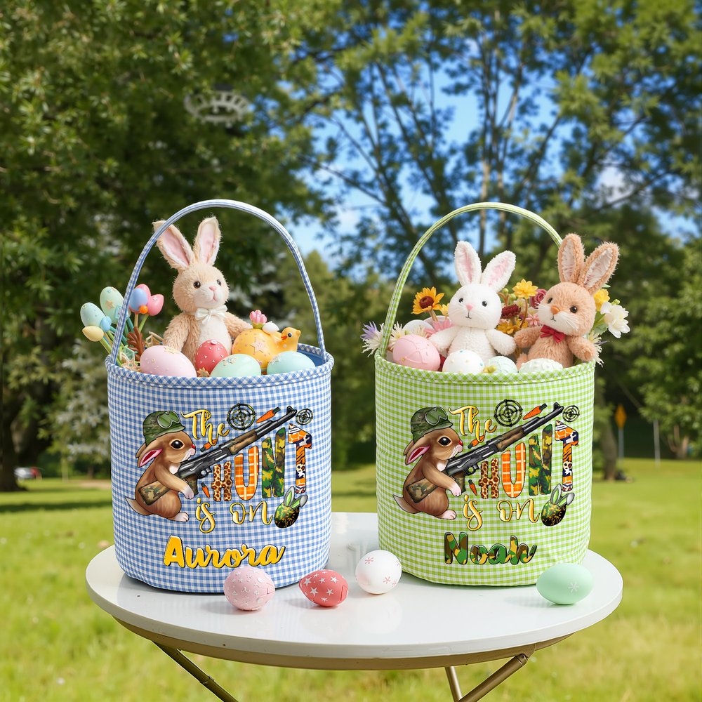 Esta cesta presenta un simpático diseño de conejito y ofrece dos motivos exclusivos: un conejito pistola de camuflaje, lleno de energía y perfecto para los niños; y un conejito cesta de huevos de flores, fresco y adorable, más atractivo para las niñas. También se puede personalizar con el nombre de su hijo, creando un artículo navideño único. No sólo muestra la personalidad de su hijo, sino que también añade un toque de ceremonia y diversión.