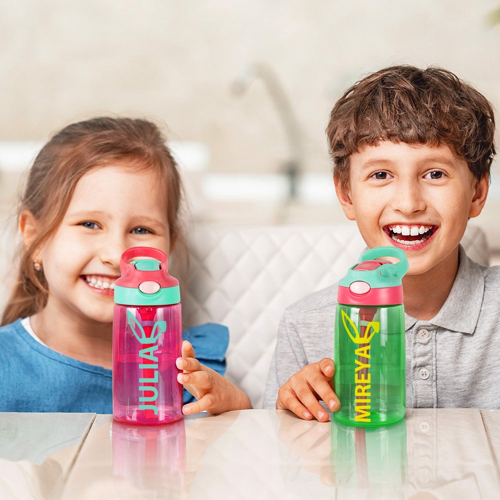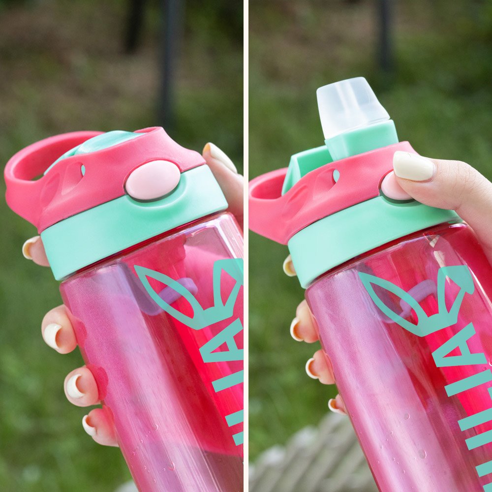 Nuestra botella de agua para niños puede personalizarse con el nombre de su hijo y adornarse con simpáticas orejas de conejo. Es el compañero perfecto para Pascua, cumpleaños, la vuelta al cole o simplemente como regalo diario para niños.