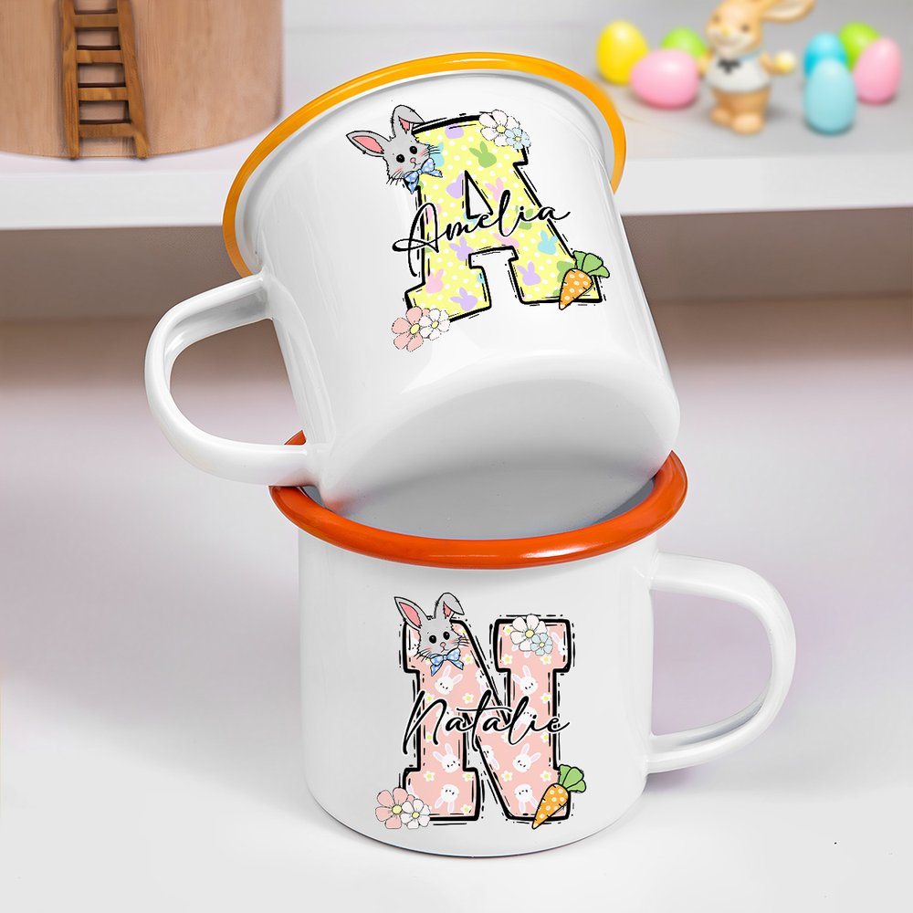 Esta taza esmaltada está diseñada con elementos de Pascua como diseño principal, incorporando patrones interesantes como conejitos, flores, zanahorias y diamantes para crear un fuerte ambiente de Pascua. Hay 5 estilos de combinación de letras para elegir, y también puedes añadir tu nombre para darle un encanto personalizado único.