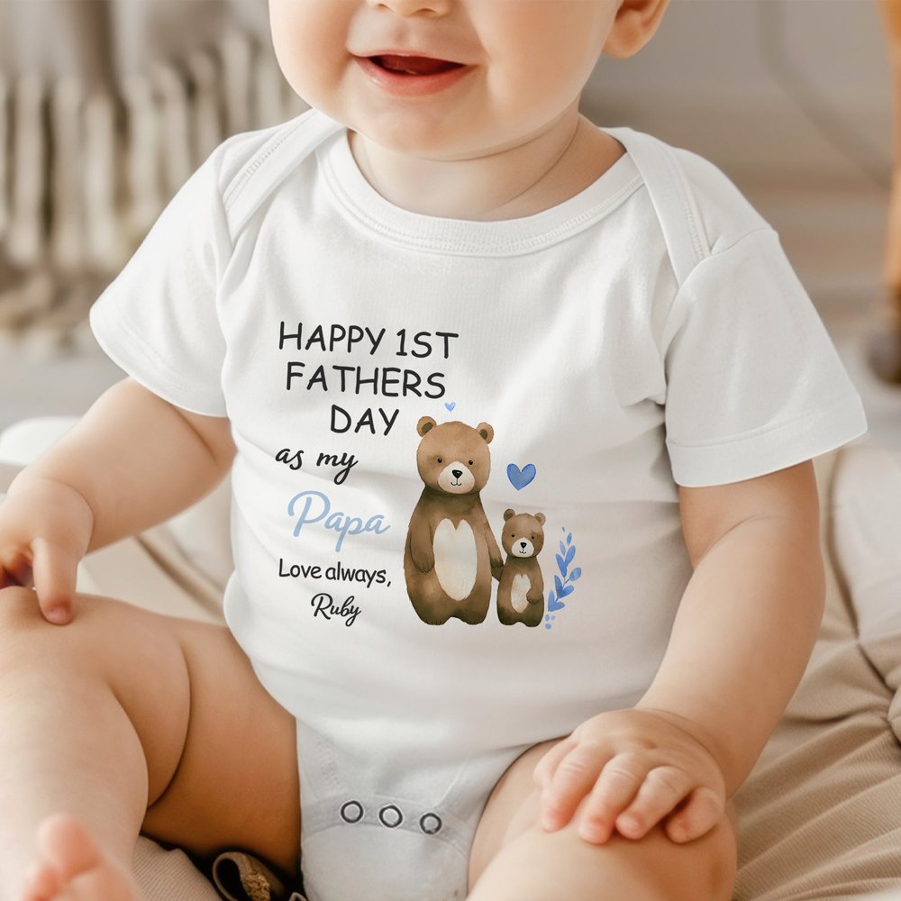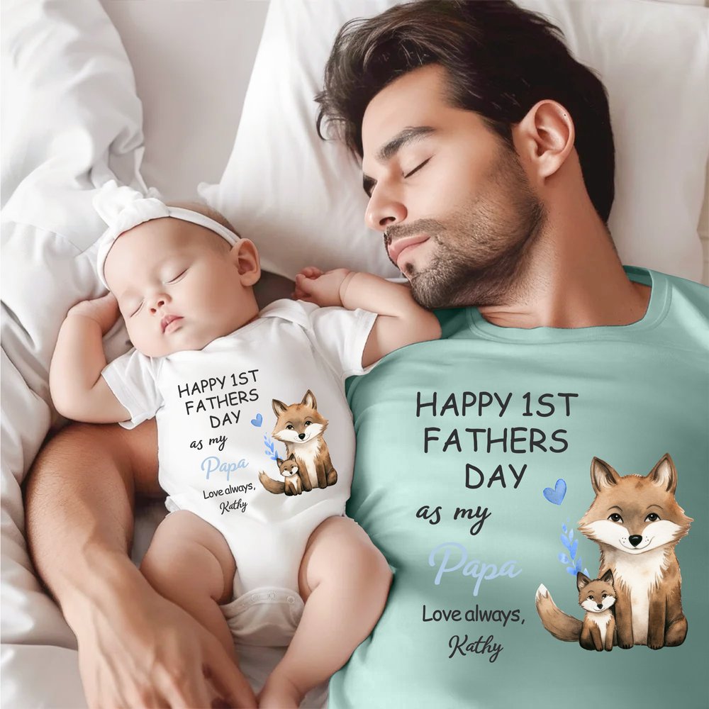 Inspirada en simpáticos animales de dibujos animados, esta prenda está disponible en 11 estampados para elegir, y lleva impresas las palabras "Feliz 1er Día del Padre" para mostrar el afecto entre padre e hijo. La camiseta y el body se complementan, combinando inocencia y profundidad. Puedes personalizarlo con el nombre de tu hijo, convirtiéndolo en un recuerdo único y precioso para ti y tu bebé.