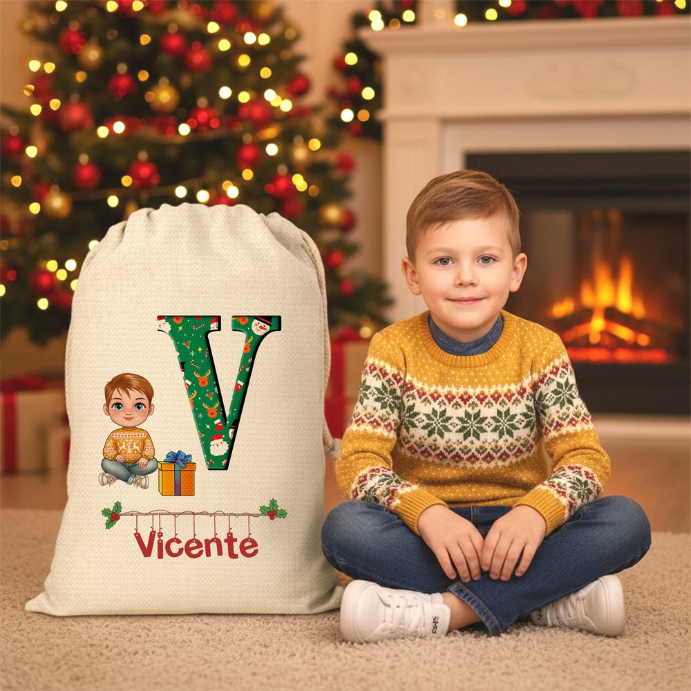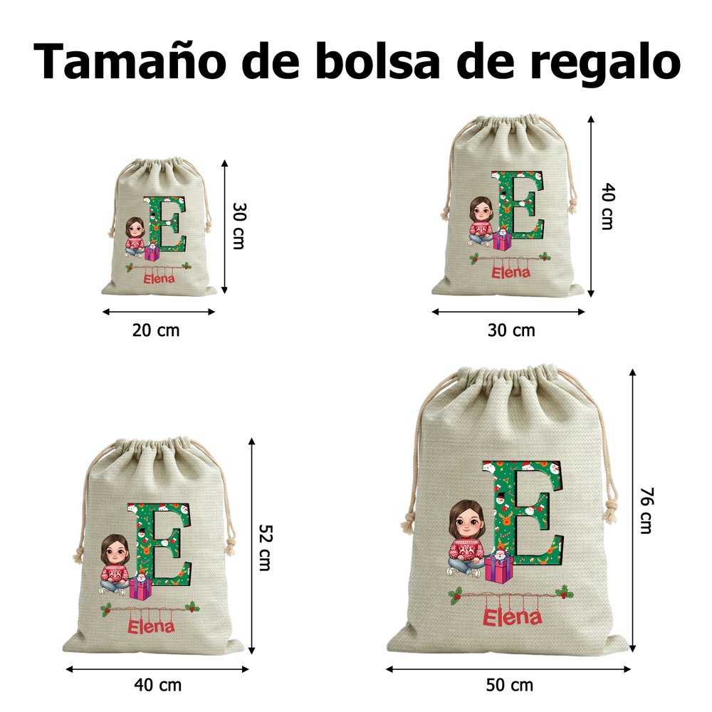 El juguetón y adorable diseño de dibujos animados navideños personalizados se combina hábilmente con tus iniciales, creando una imagen navideña única. El nombre personalizable que aparece debajo hace que la bolsa sea única, mostrando individualidad y consideración. El diseño general combina a la perfección elementos navideños con toques personalizados, creando un ambiente festivo con un sentido único de exclusividad.