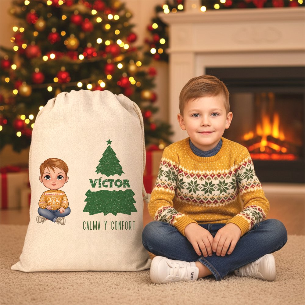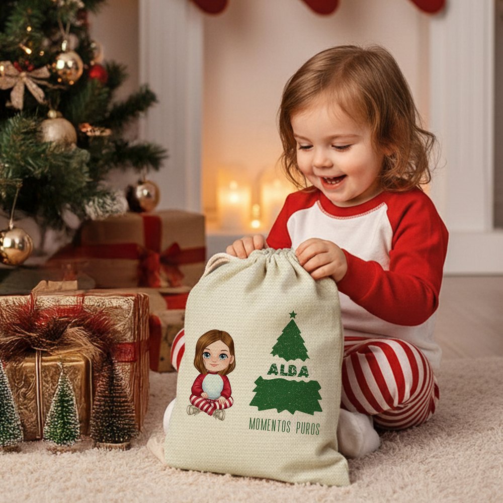 Esta bolsa presenta un juguetón personaje de dibujos animados y un diseño clásico de árbol de Navidad, creando un ambiente rico y festivo. Puedes elegir tu dibujo animado favorito y añadir tu nombre o el de tu ser querido, convirtiendo cada bolsa en una obra de arte única. Este diseño personalizado no solo capta la atención, sino que también aporta una sensación de calidez y alegría navideñas únicas a cada usuario.