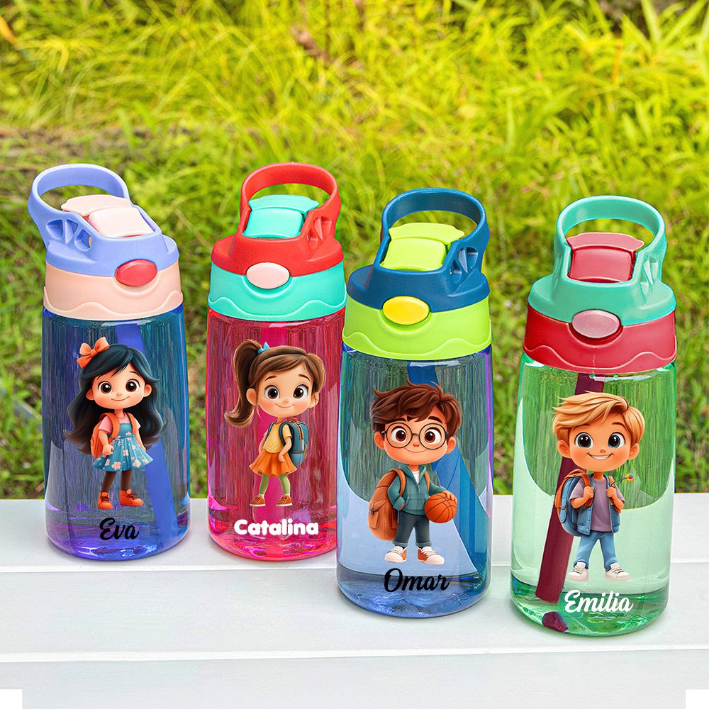 Esta botella de agua te permite personalizar una variedad de diseños de dibujos animados que reflejan la personalidad única de tu hijo. También puedes seleccionar diferentes fuentes y colores para personalizarla con el nombre de tu hijo, convirtiéndola en un recuerdo memorable de su infancia. Disponible en cuatro colores vibrantes: azul, rojo, verde y morado, esta botella será un éxito entre los chicos.
