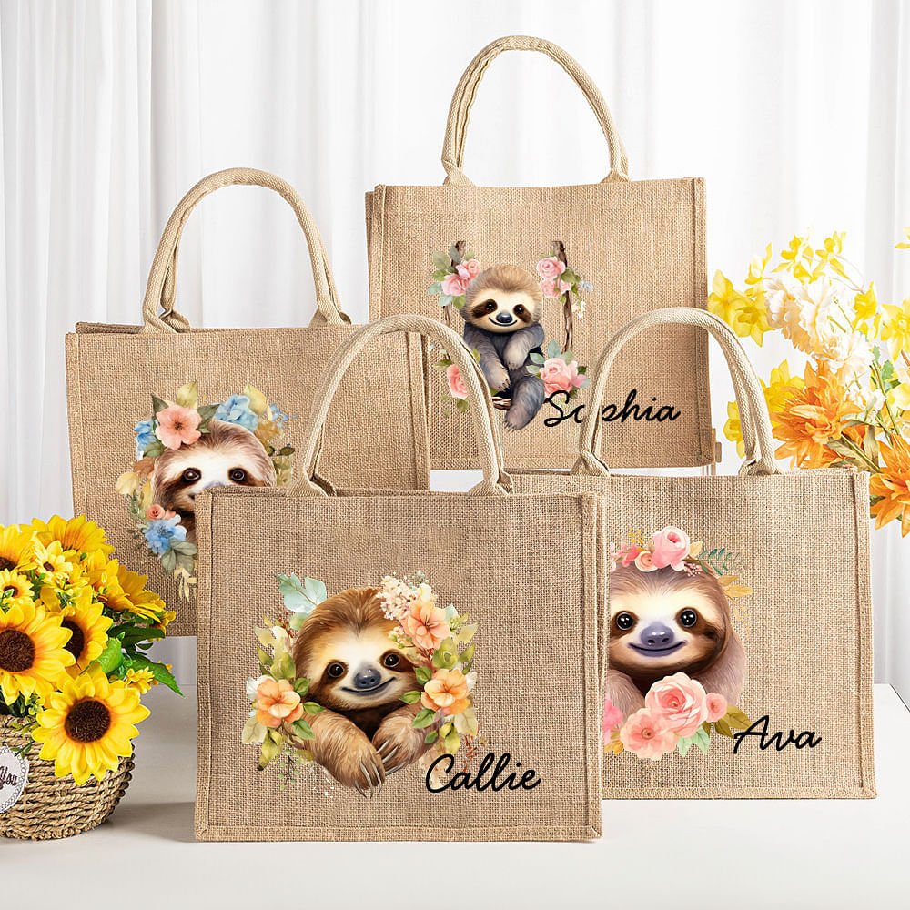 Este bolso de mano incorpora el diseño de perezosos de dibujos animados y flores. Tiene 16 motivos diferentes, que captan los distintos movimientos y expresiones de los perezosos, presentando una variedad de estilos como mono, juguetón, elegante, infantil y cálido. En la parte delantera puede figurar su nombre, una forma de expresar su personalidad.