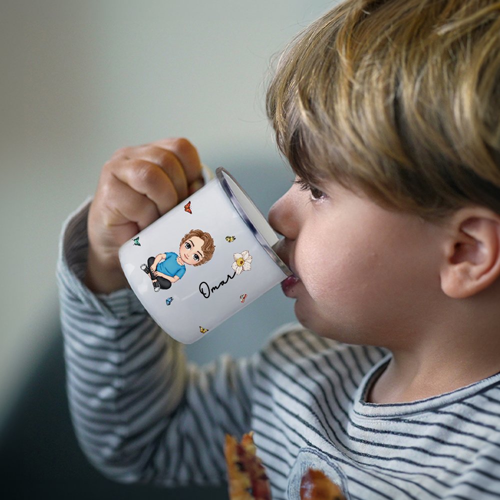 Esta taza esmaltada es una combinación encantadora y única. Con personajes de dibujos animados personalizables para niños, niñas e incluso bebés, esta taza refleja la esencia de la personalidad de tu hijo. Con su flor de nacimiento y su nombre, transforma una taza común en un recuerdo especial que los niños amarán.